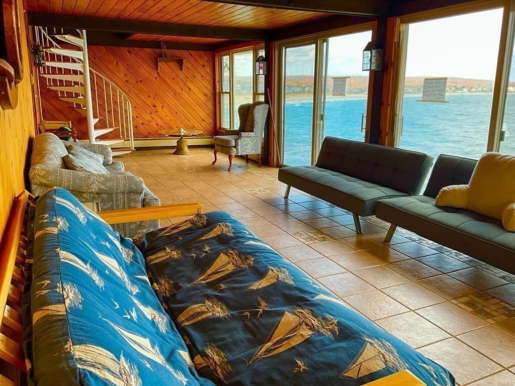 **WEEKLY SUMMER RENTAL** Spend your summer on the ocean! This beautifully situated oceanfront home offers panoramic water views from both levels and the perfect coastal escape. The main level features two bedrooms, a full bath, a bright living room, and an eat-in kitchen with dining area overlooking the ocean. A spiral staircase leads to a lower-level bonus room with additional living space, basement access, and in-unit laundry. Pull-out sofa (full-size mattress) provides extra sleeping options. Two off-street parking spaces included. Just steps to the beach and conveniently located near local restaurants, Route 3, Historic Downtown Plymouth, and under 15 miles to the Sagamore Bridge and Cape Cod. Weekly rentals only (Saturday to Saturday). Discounts available for consecutive week bookings. Actively booking Summer 2026.