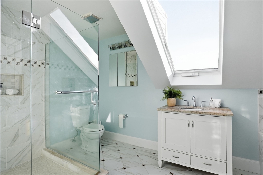 Commuters Dream. Convenient access to Mass Pike & I95, Boston & Cambridge. Steps to MBTA Express Buses. Thoughtfully updated top floor condo filled with natural light. This inviting home offers comfort, flexibility, and more space than expected. A paved driveway with two dedicated parking spaces adds everyday convenience. Inside, the open floor plan creates effortless flow for living and entertaining. Bedrooms and a full bath on the main level offer versatility framed by peaceful treetop views. The private primary suite occupies its own floor, featuring generous walk in closet space and a spacious bath designed for relaxation. Just off the front porch, a flexible bonus area provides the perfect space for a home office, library, or quiet sitting room. Two exterior covered porches and a fenced yard extend living outdoors. A finished lower level offers additional space for a playroom, media room, or gym. Open house 2/28 & 3/1 12-2PM