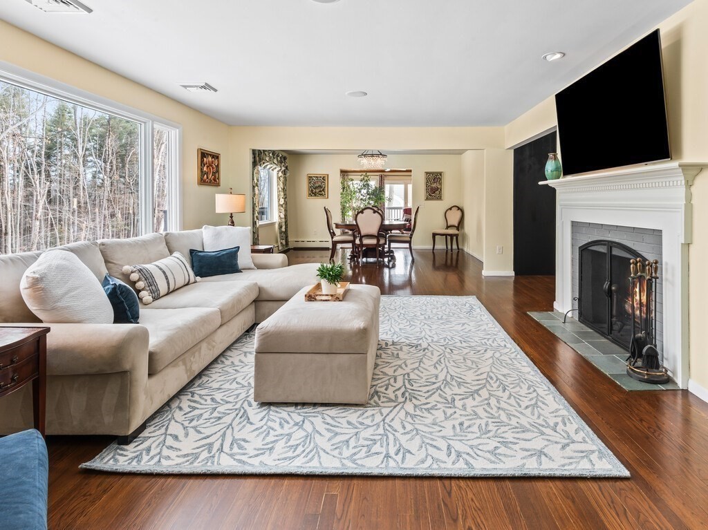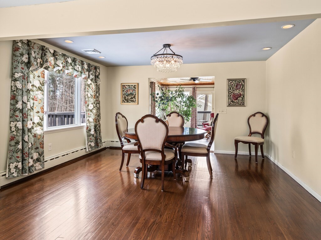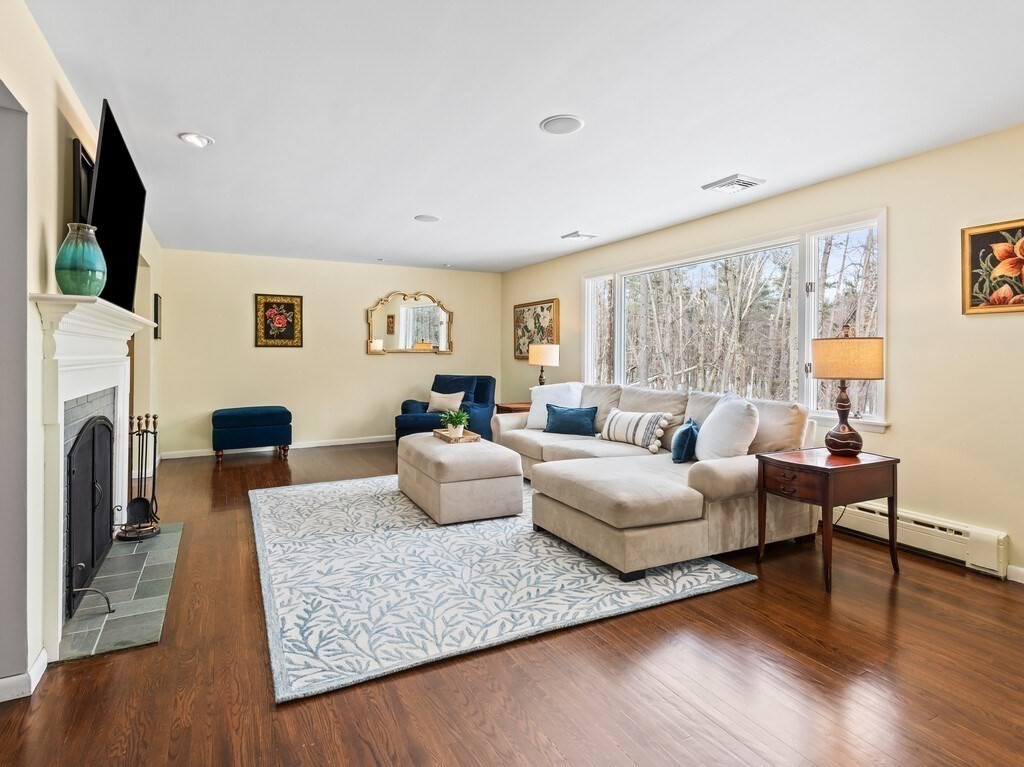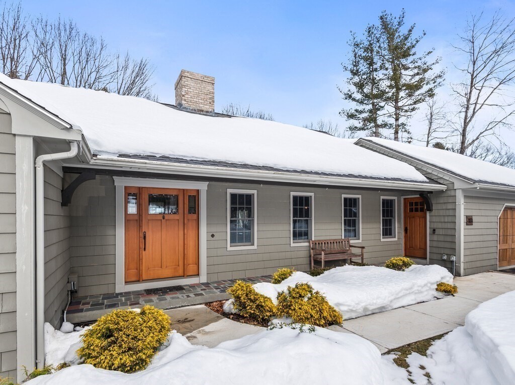 MID-CENTURY MODERN STYLE MEETS SINGLE LEVEL LIVING CONVENIENCES IN THIS STUNNING UPDATED CUSTOM HOME! Gorgeous premiere Kitchen w/ SS Bosch wall oven, DW & MW, LG Refrigerator & new induction cooktop. 2 undercounter beverage frigs, granite counter-tops, new cabinetry. Expansive foyer brings you to stunning open concept fire-placed Living & Dining rooms which loop back to the modern eat-in kitchen. HW floors thru-out! Zen-like heated sun room that takes you to a deck overlooking the serene, private back yard. The Main BR on 1st floor has upscale spacious & inviting bath. Beautiful Guest Bath for 1st floor Guest BR. LL: Fam Rm w/ FP, 3rd BR w/ huge full Bath, Office & remodeled Laundry. All Baths updated! New Roth oil tank '25, chimney redone down to roof '24, new vinyl flooring in sun room & LL '21. New central vac '21. Many newer windows '22. New driveway & walkway '25. Professional landscaping. Amazing home in sought after neighborhood...a must see! OH's SAT 2/28 1-3, SUN 3/1 11-1