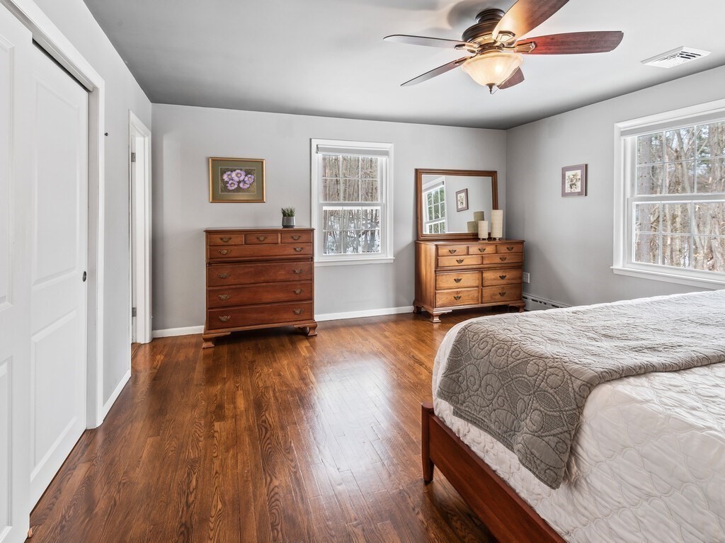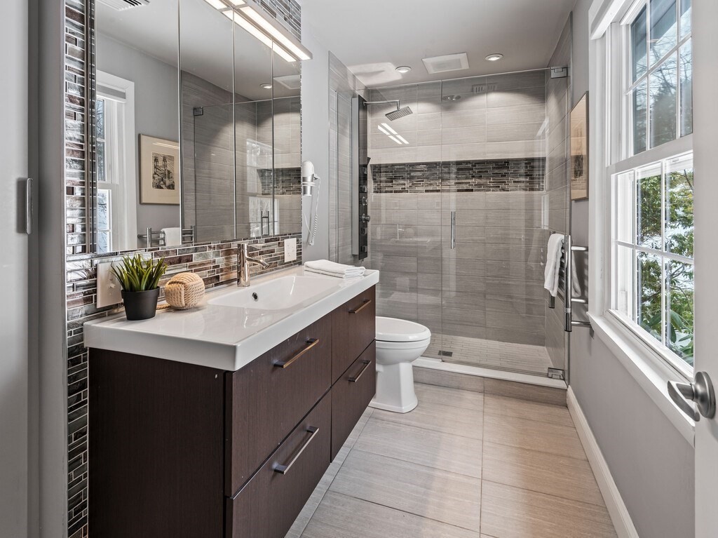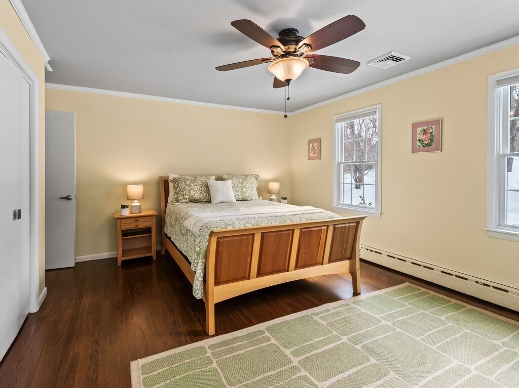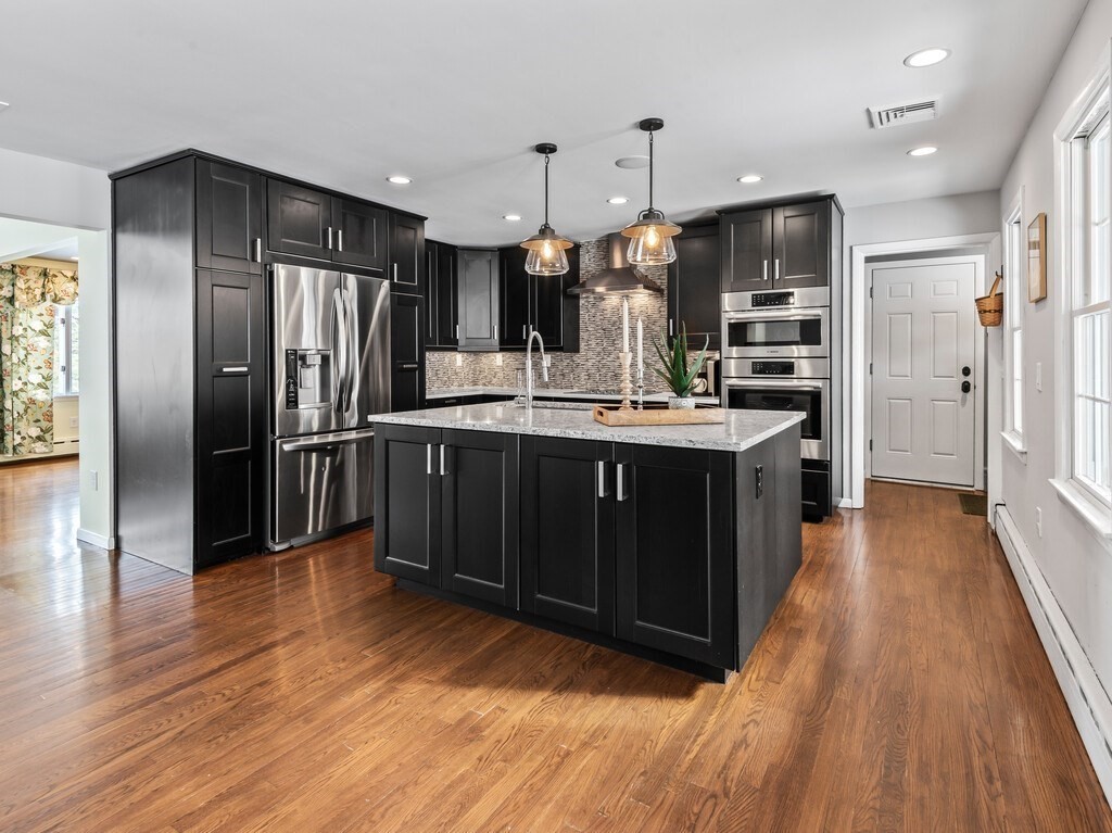 MID-CENTURY MODERN STYLE MEETS SINGLE LEVEL LIVING CONVENIENCES IN THIS STUNNING UPDATED CUSTOM HOME! Gorgeous premiere Kitchen w/ SS Bosch wall oven, DW & MW, LG Refrigerator & new induction cooktop. 2 undercounter beverage frigs, granite counter-tops, new cabinetry. Expansive foyer brings you to stunning open concept fire-placed Living & Dining rooms which loop back to the modern eat-in kitchen. HW floors thru-out! Zen-like heated sun room that takes you to a deck overlooking the serene, private back yard. The Main BR on 1st floor has upscale spacious & inviting bath. Beautiful Guest Bath for 1st floor Guest BR. LL: Fam Rm w/ FP, 3rd BR w/ huge full Bath, Office & remodeled Laundry. All Baths updated! New Roth oil tank '25, chimney redone down to roof '24, new vinyl flooring in sun room & LL '21. New central vac '21. Many newer windows '22. New driveway & walkway '25. Professional landscaping. Amazing home in sought after neighborhood...a must see! OH's SAT 2/28 1-3, SUN 3/1 11-1