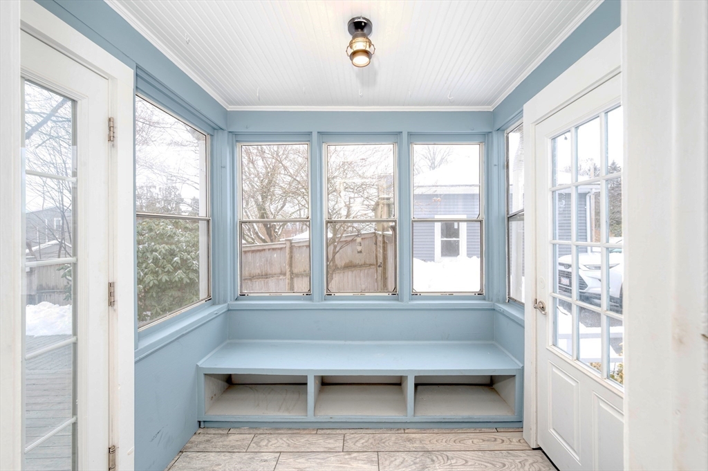 Welcome home! Nestled on a quiet, side street, this lovingly maintained home radiates character and charm with hardwood floors on the main level, beautiful French doors leading to the dining room, freshly updated kitchen and full bathroom. The second floor includes a spacious primary bedroom with an ensuite bathroom and a second and third bedroom. The fully renovated lower level (2025) has ample space with three separate bonus rooms (not included in sq. footage). Recent home improvements include: interior painted (2026), new refrigerator (2024), new water heater (2024) updated electrical (2024) and insulation (2024).The three-season screened-in porch leads to a large, fenced-in backyard with a patio and fire pit – a peaceful retreat to enjoy the outdoors! Great commuter location! A short distance to the commuter rail (0.3 miles) and close proximity to major highways (I-95, Rt. 140 , I-495 & Rt.123). Open House on Sat. 2/28 and Sun. 3/1 from 12 - 1:30PM.