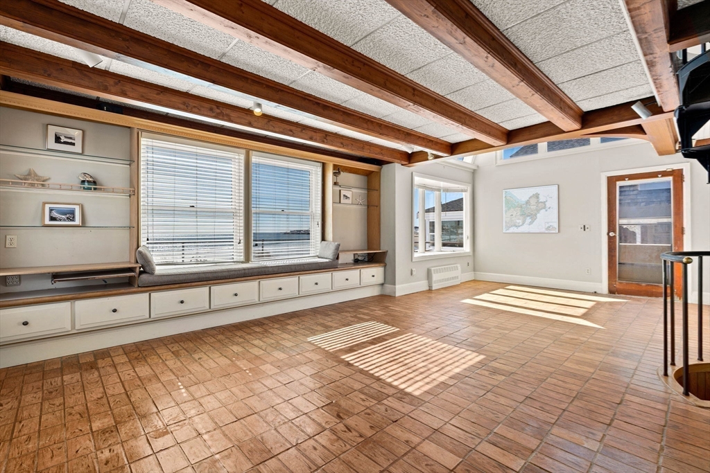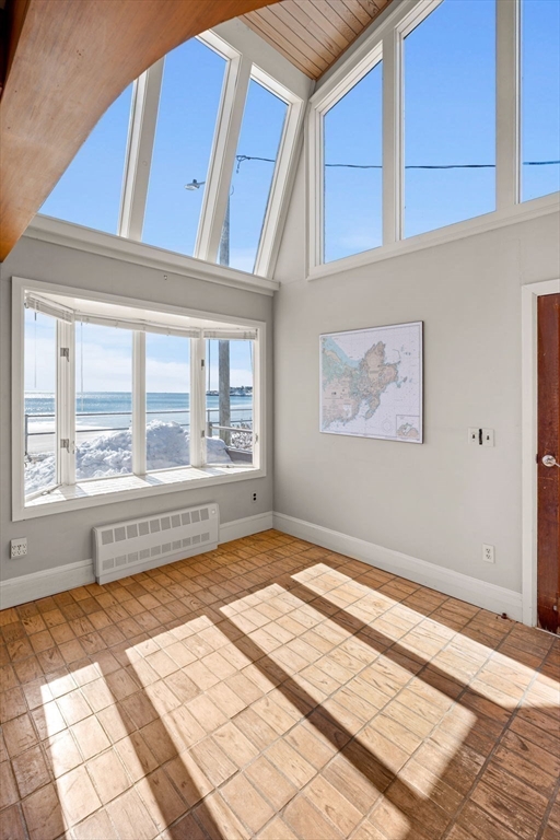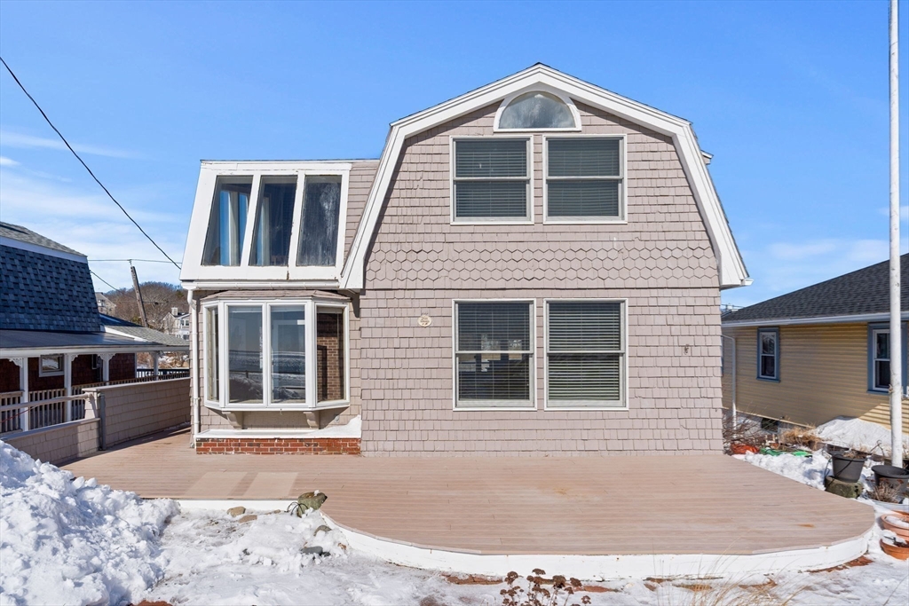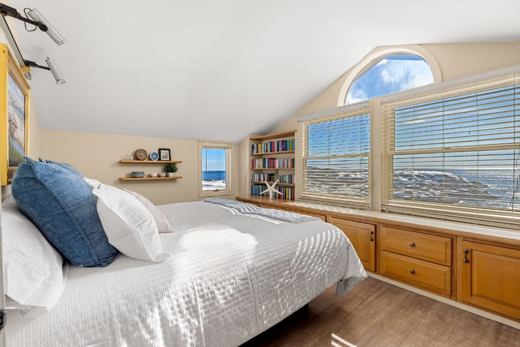 Offered for the first time in over a century, this rare FRONT ROW coastal home is a true beach house, where every room immerses you in water with direct ocean views from the front and sides and marsh vistas to the rear. Third from the end of Long beach, the ever changing seascape becomes part of daily life, offering a breathtaking, all-encompassing connection to nature. Just offshore, a striking natural rock formation sculpted by time has shielded this home during major coastal storms, making this part of the beach exceptionally distinctive and truly one of a kind. Composite decking spans the oceanside and wraps around to a large sunroom providing serene marsh views, abundant natural light and wildlife. Featuring passive solar design for natural warmth and cooling and a garage adding exceptional value. A finished lower level with full bath and efficiency-style kitchenette offers flexible seasonal guest or multi/family accommodations. This is a once in a generation opportunity.
