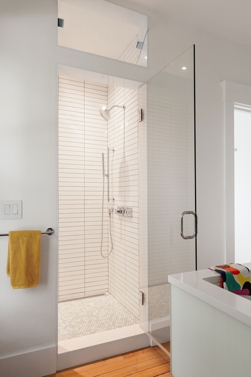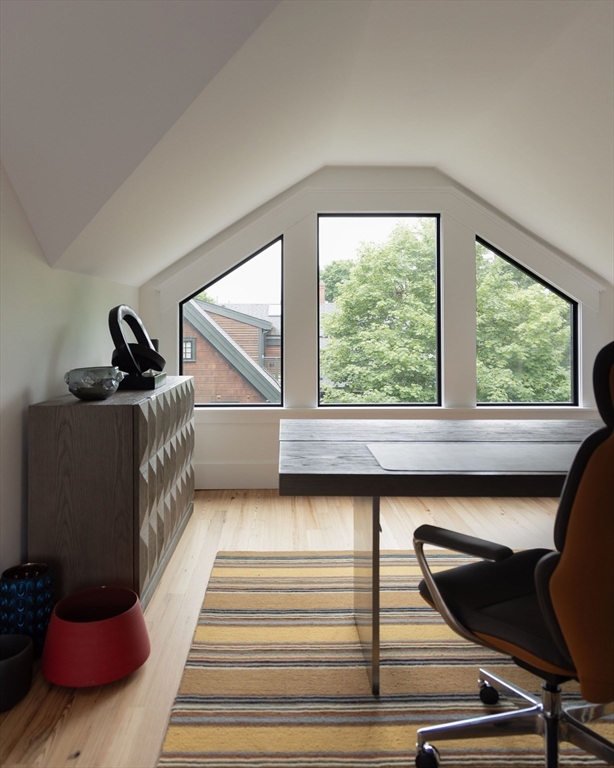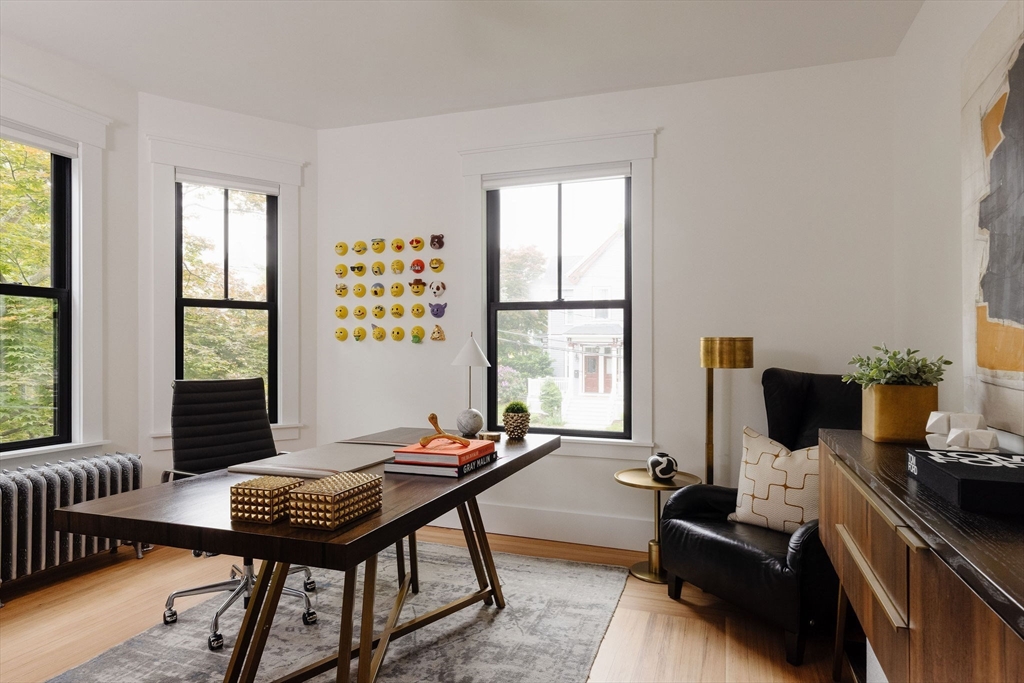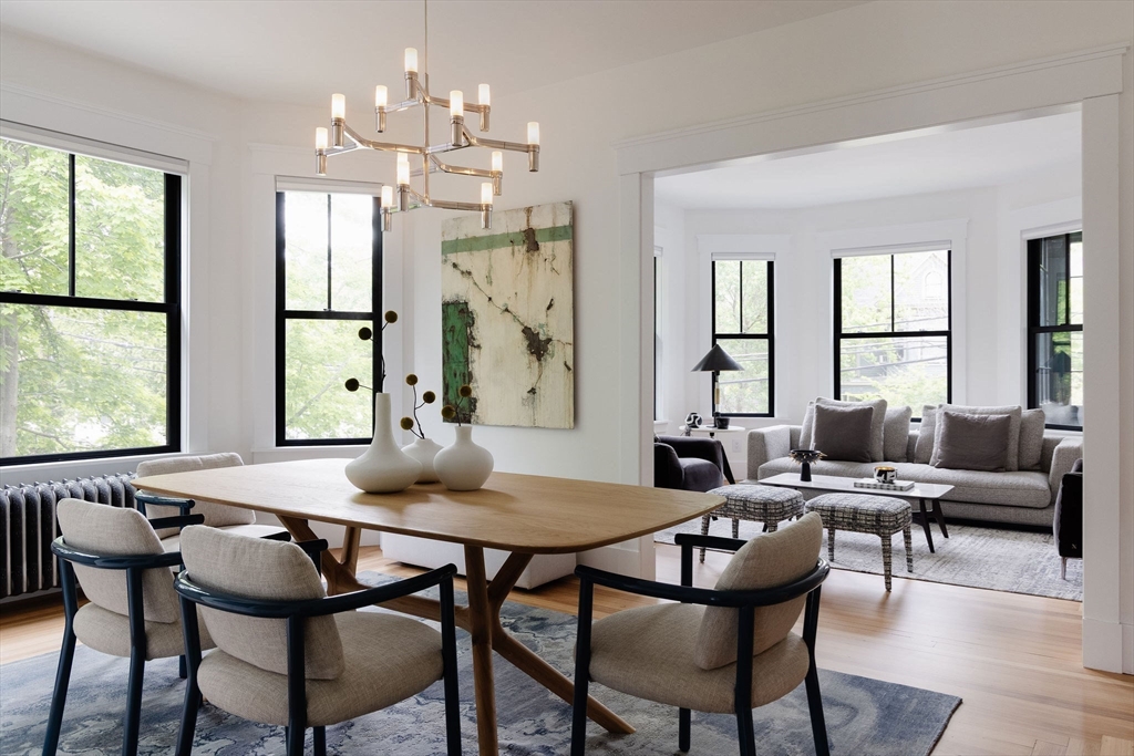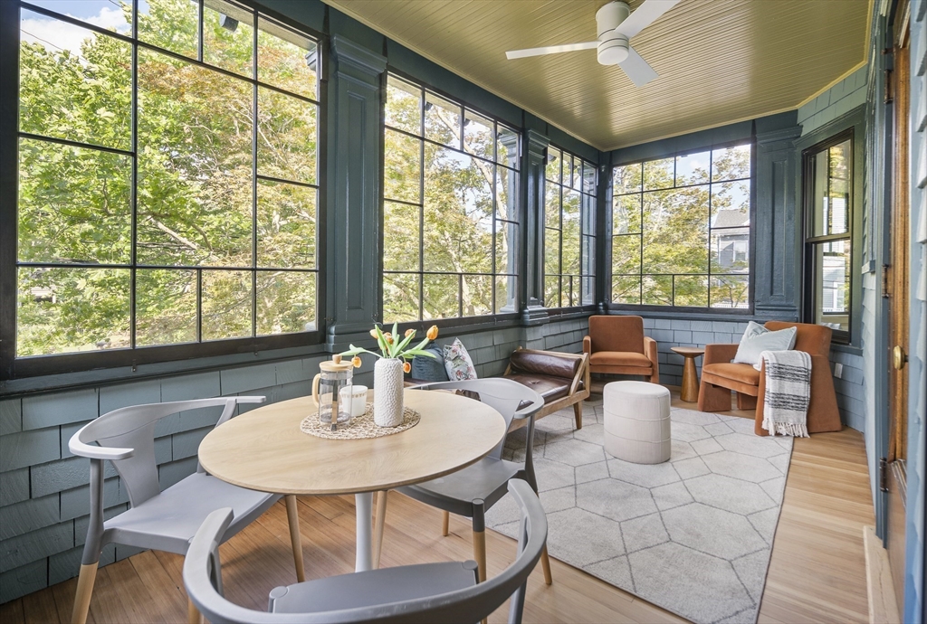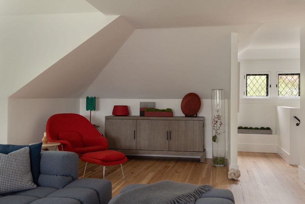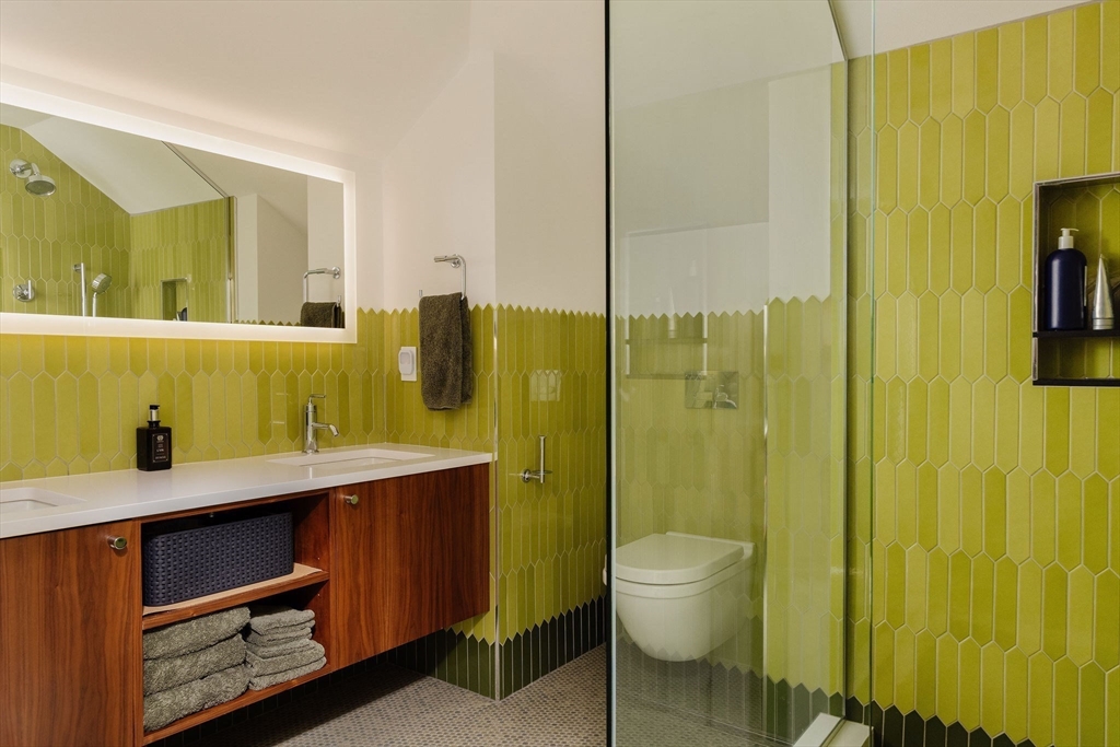 East Watertown. Superb modern condominium in restored 1910ca Shingle-Style/Colonial Revival. Fully gutted to the studs, this spacious 4 bedroom property features 2 primary suites (one on each floor) a fireplaced living room & dining room, a stunning custom-built kitchen with Sub Zero/Wolf stainless steel Appliances, SileStone counters, Walnut espresso bar and reclaimed wood floors. There's an oversized front-to-back family room/game room on the top floor with vaulted ceilings, a half bath, 3-exposures, reclaimed wood floors and a wall of windows facing West. Also, full-insulation and sound-proofing, modern bathrooms with Japanese tile, Kohler and Duravit fixtures, large Marvin windows & doors, private decks, enclosed porches, patios as well as exclusive-use yard space. Two-zone central air-conditioning, 3-zone gas heating w/fully restored hot water radiators, new plumbing, walk-in closets, in-unit laundry, ample storage in basement and garage.