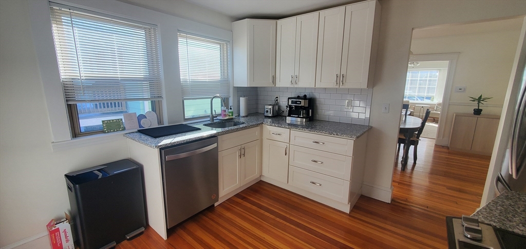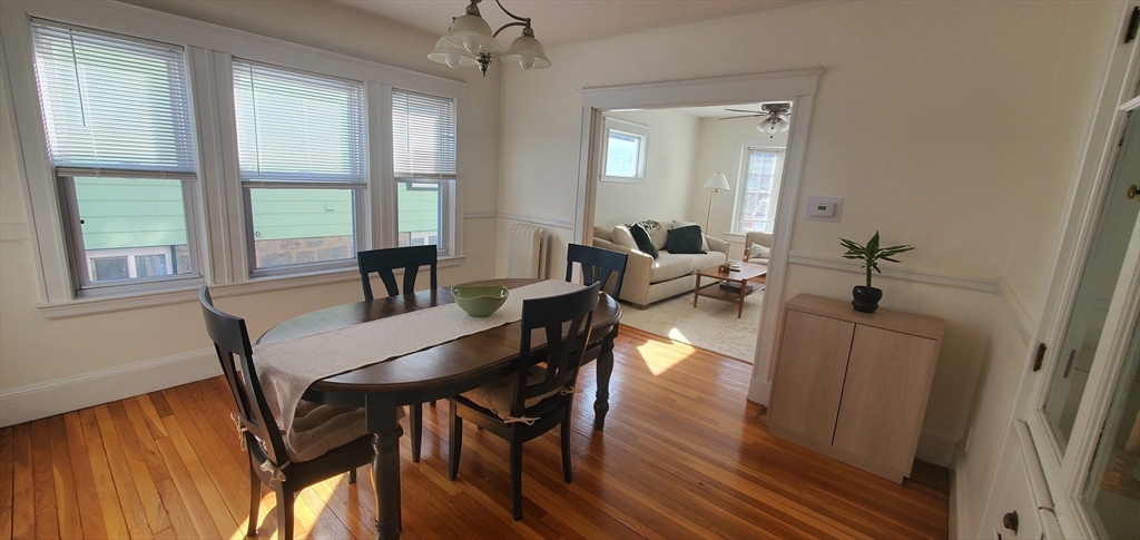 Cedar Grove on a tree lined dead-end street! Oak floors and crown moulding. Lovely updated kitchen with granite counters, shaker cabinets, SS appliances, tile backsplash, fir floor. Updated tile bath. Living room with bay window and ceiling fan. Dining room with built-in china cabinet. Gas heat and in-unit laundry. Cedar Grove T right around the corner, Dorchester Park nearby. Close to 93 and shopping. Street parking. First and last mo rent for move-in.