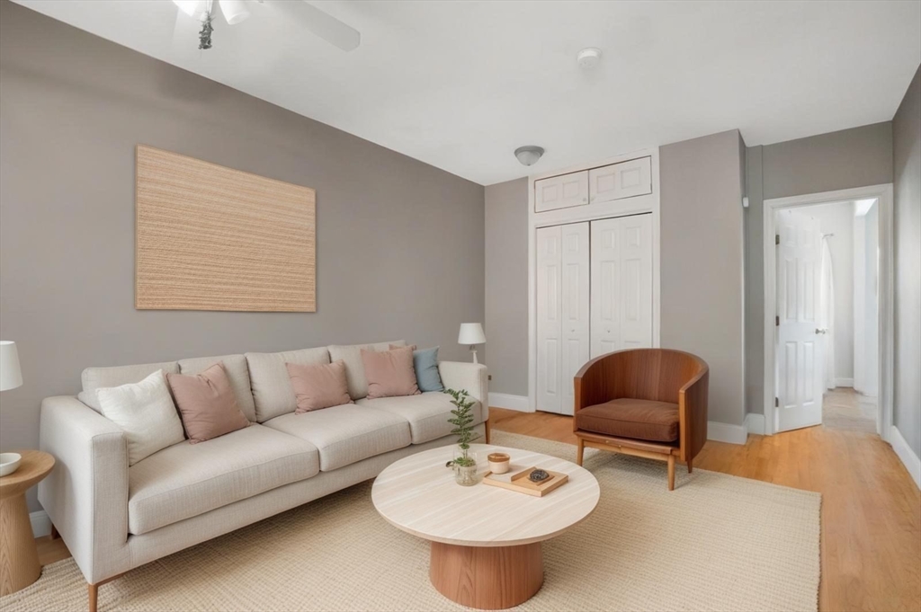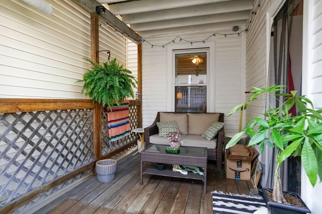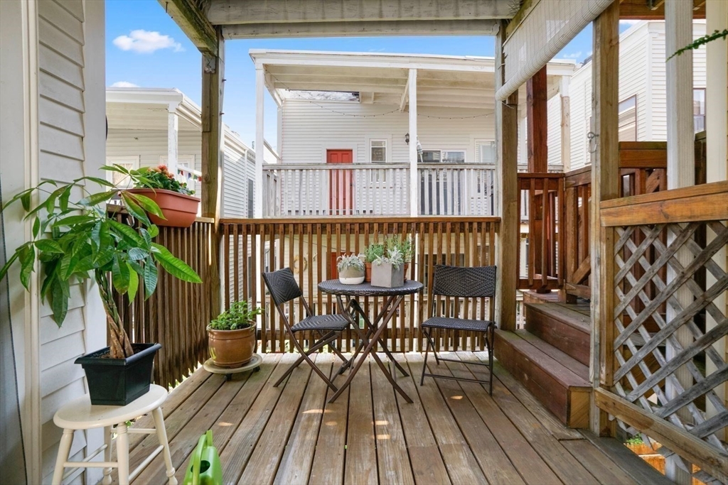 Located just off Thomas Park, on quiet Story Street, sits this adorable second-floor one-bedroom condo. Inside, you'll find a great open layout with high ceilings and beautiful hardwood floors, a cozy eat-in kitchen with gas cooking, granite counters, and lots of storage. The large living room offers plenty of space for entertaining + an office area, a large closet, and a walkout rear deck. The oversized bedroom features ample closet space, shelving, and lots of natural light. There is a private washer and dryer in the basement as well as a storage room. Story Street is only a few short blocks to the beach, #9,10,11 bus routes, and all the great shops and restaurants on Broadway! This association is only 3 units, has a very low HOA fee that includes heat and hot water. This HOA is also pet and rental-friendly. There are tenants in place through 5/1/2026.