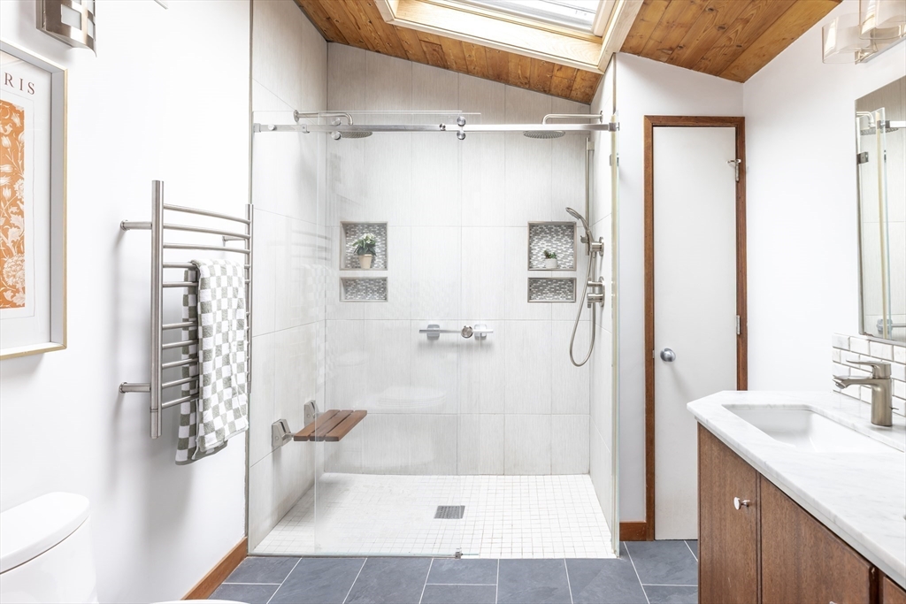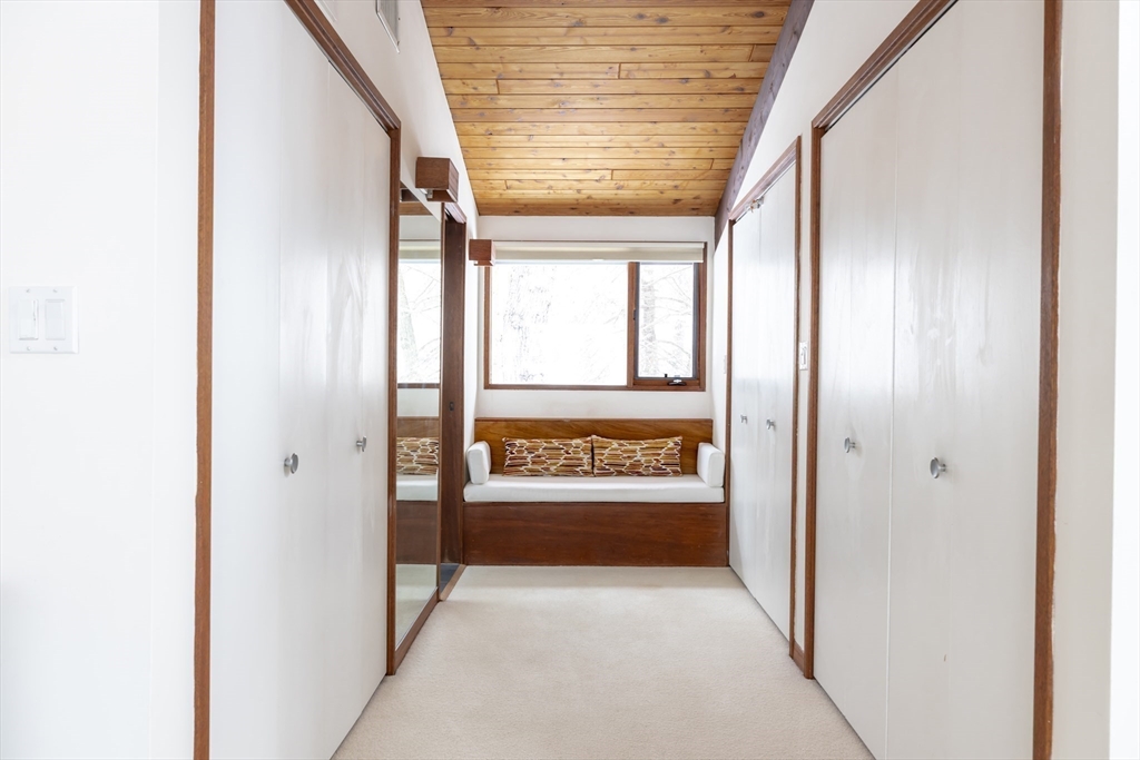 A dramatic wall of windows captures sweeping treetop views from this remarkable Contemporary-style Deck House. Perfectly sited on a gentle hillside along one of Chestnut Hill’s most picturesque streets, this four-bedroom, two-and-a-half-bath residence masterfully blends architectural character with thoughtful modern updates.The open-concept design showcases light-filled spaces, beamed vaulted ceilings, generous room sizes, and warm, inviting details throughout. The updated kitchen is a chef’s dream, featuring gas cooking on a WOLF stove and custom cabinetry. The spacious living room opens through sliding glass doors to a large deck with spectacular views—ideal for entertaining. Cozy up by the pellet stove in the family room this Winter, or tend to your plants in the attached greenhouse come Spring. Enjoy Summer gatherings on the private patio. Additional highlights include a new roof (2025), shed (2020) and a direct-entry 2 car garage.