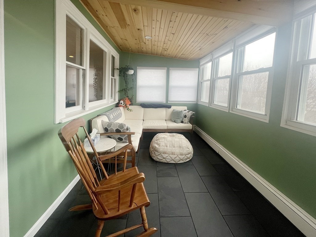 AVAILABLE MAR/APR! Skyline and Park views from this top floor oversized gem of a unit! 2BR/1BA unit with over 1200SF of living space! Entry way with closet opens to sizable living room/ dining room area, easily accommodating sectional and dining for 6+ with engineered HW flooring and recessed lights! Rear facing kitchen is light filled with wood cabinets, black granite counters including kitchen island with seating, and tile flooring. Off kitchen is light filled/ heated space overlooking yard with city views~ perfect for an office, playroom or sunroom! Primary bedroom overlooks park with walk in closet. Second bedroom features wall to wall carpet and double closet. Bathroom is efficient with tub/shower combo. Private laundry is off second floor rear stairs. Shared common yard. Great storage space in basement. First mo/ 1 mo security and credit over 650 required. Pets negotiable. Across from Putnam Square Park, 15 min commute to downtown and blocks to restaurants/ park