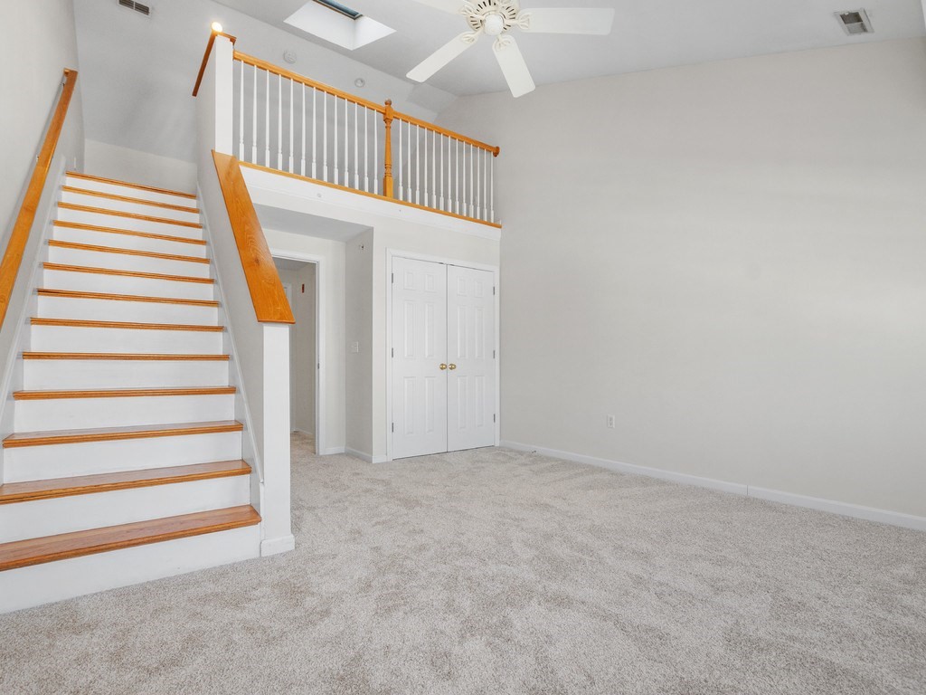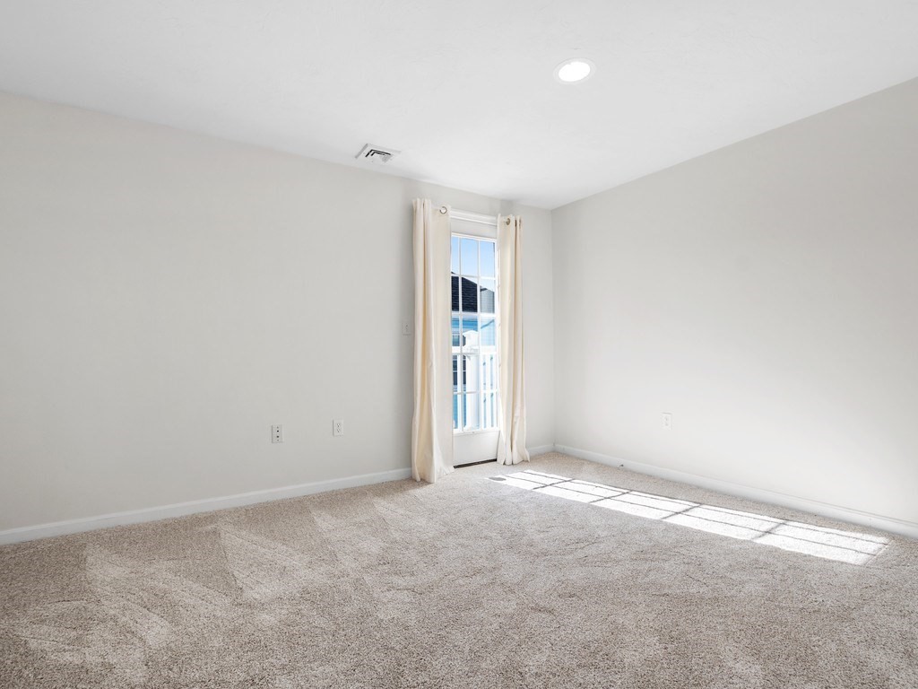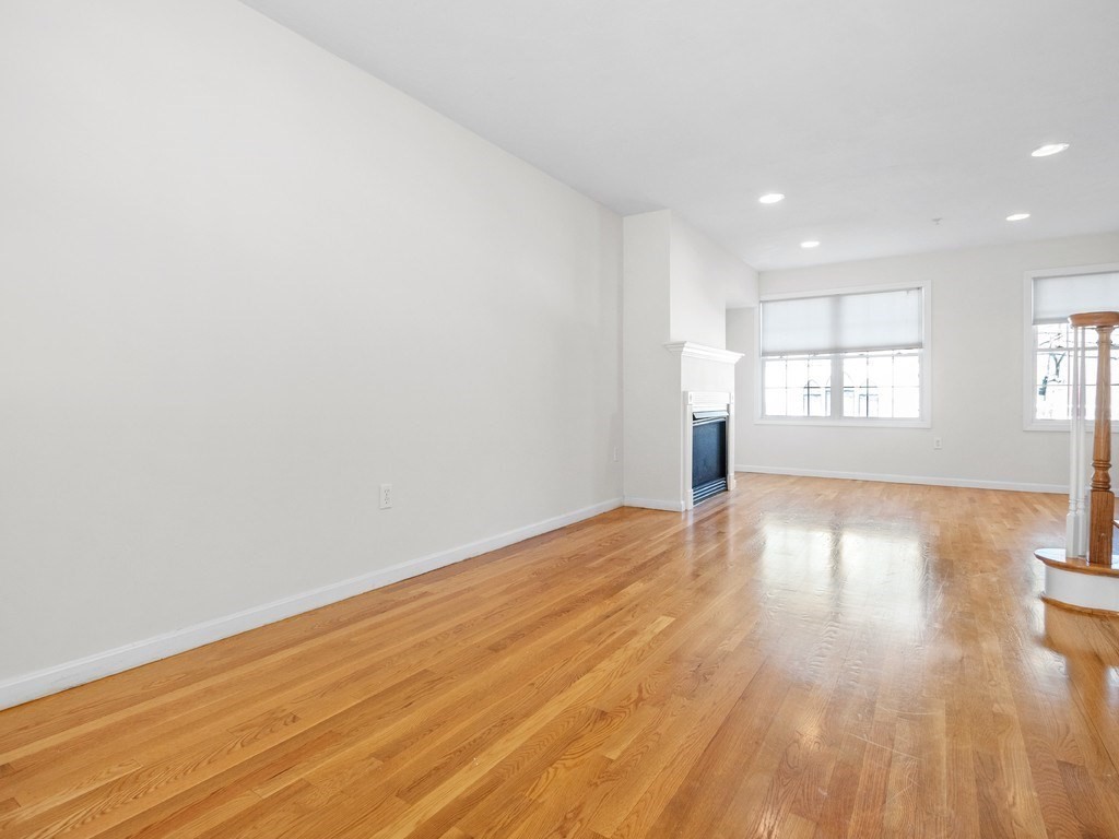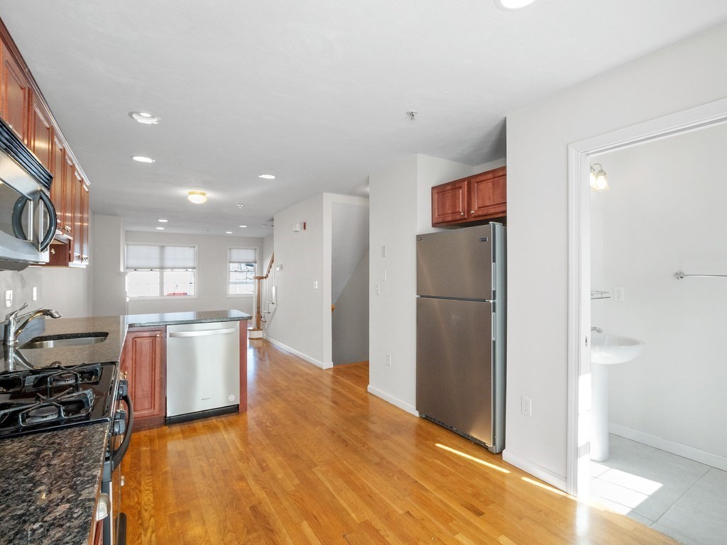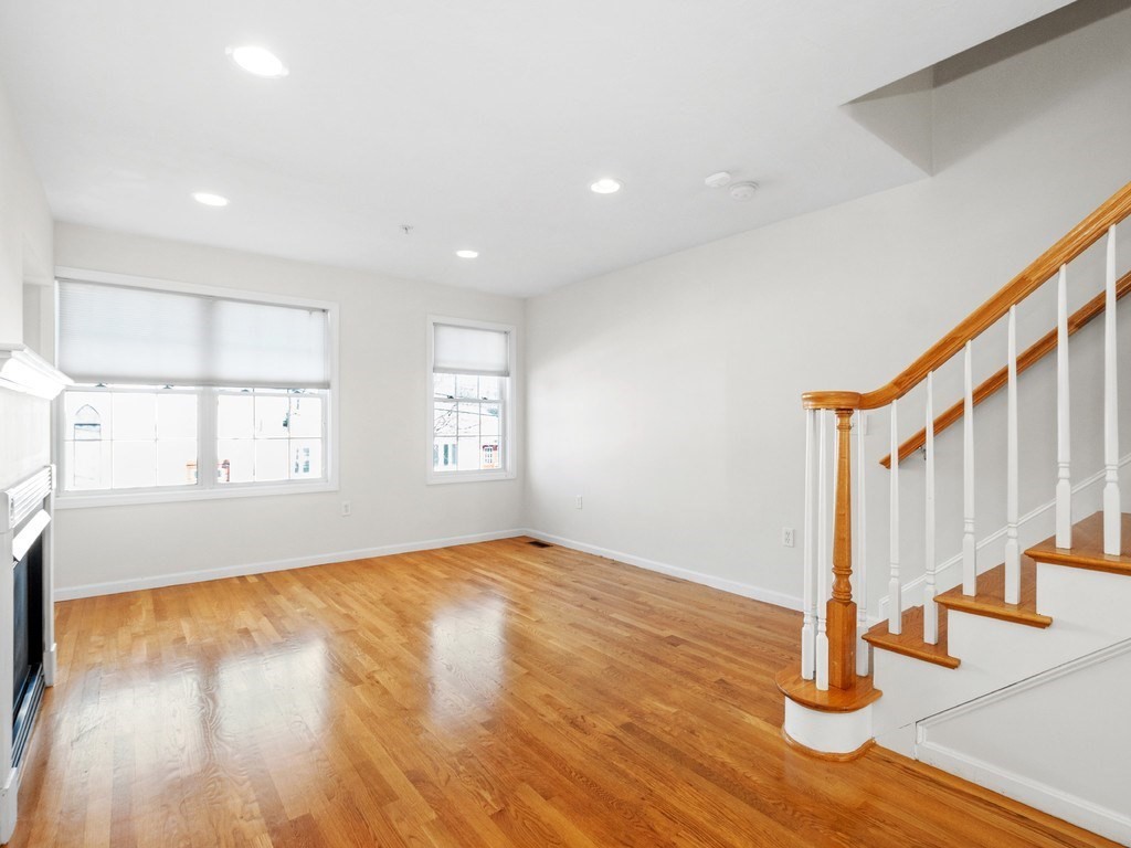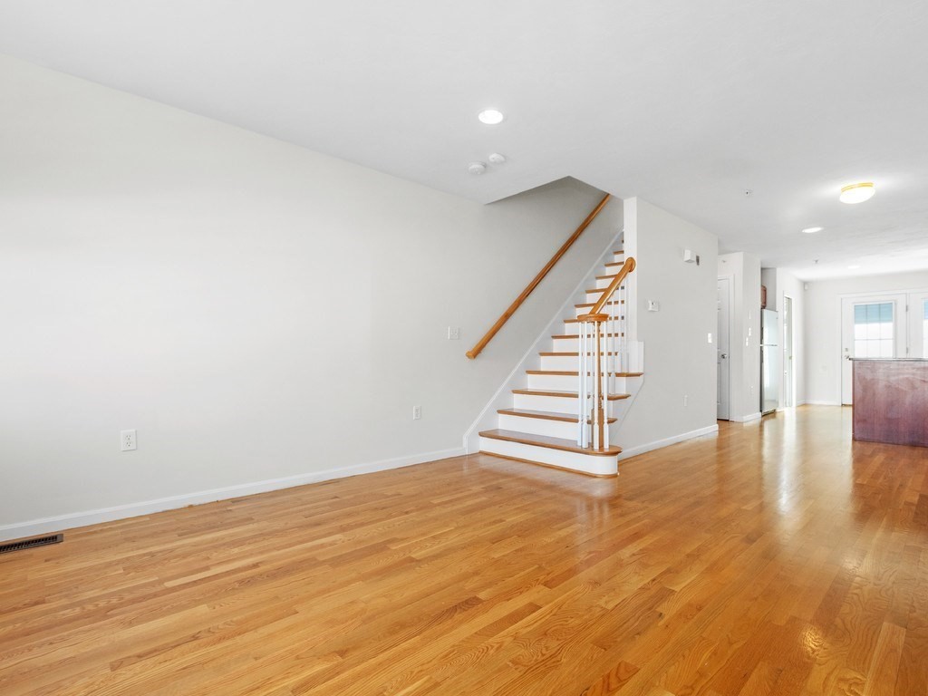 Welcome to this stunning townhome in Waltham's coveted Fieldstone Crossing. Freshly painted and updated with newer roof, siding, HVAC system, decks, appliances, and new bedroom carpeting. This modern, low-maintenance home offers central air and a direct-entry garage with custom floors, lighting, and two-car parking. Just steps from Moody Street’s restaurants, shops, and public transportation, it features a bright living room with hardwood floors, recessed lighting, a gas fireplace, and an open layout flowing into the dining area and breakfast bar. The kitchen includes granite counters, stainless-steel appliances, gas cooking, ample cabinetry, and French doors to a private balcony. The upper level offers two bedrooms, including a spacious primary with cathedral ceilings, an arched picture window, and a skylit loft ideal for an office or nursery, plus ceramic tile baths and more! Smart, stylish living in a prime Waltham location.