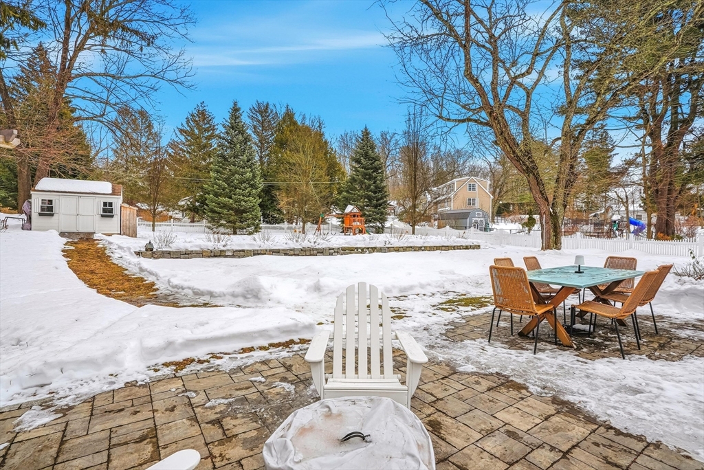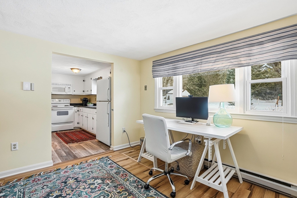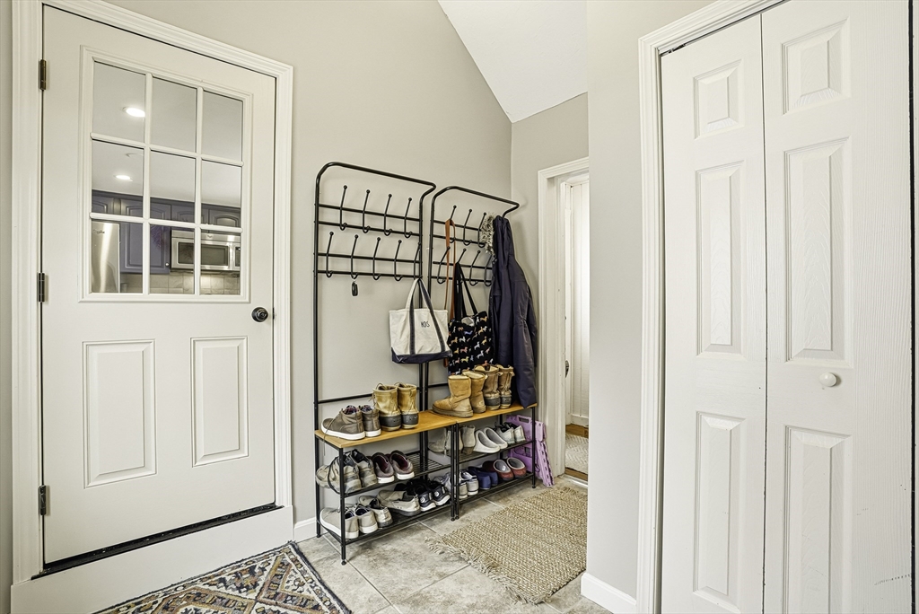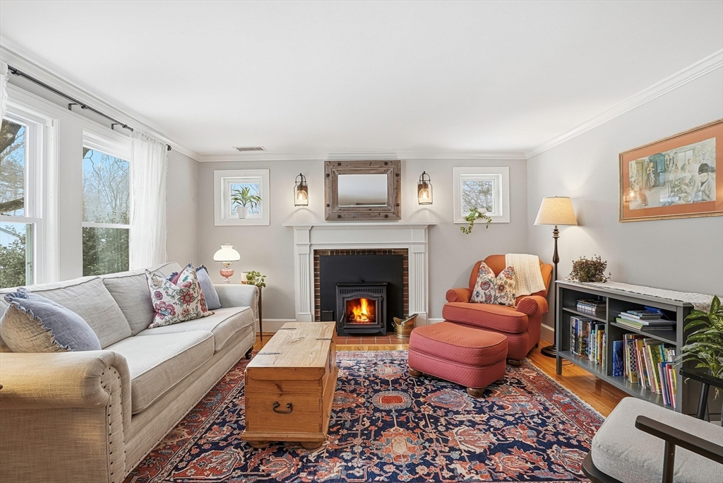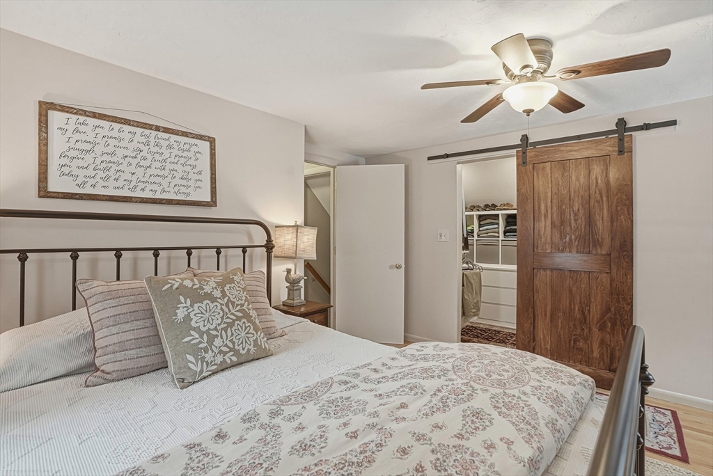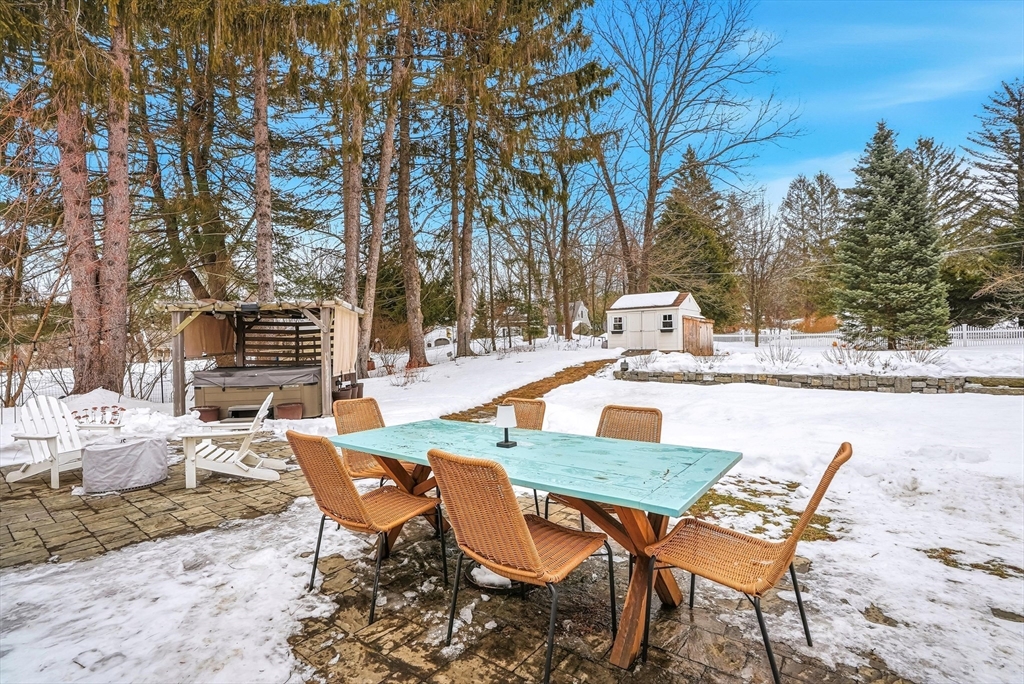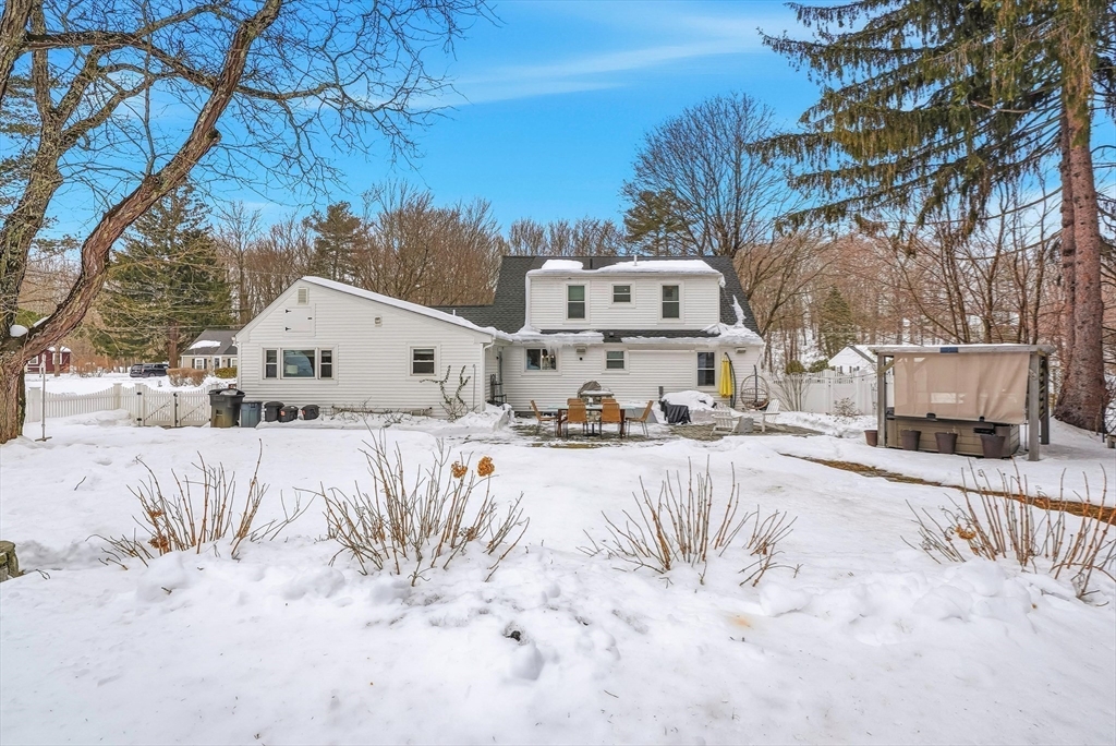 Discover this rare offering, a welcoming single-family residence featuring an integrated additional living space. This home is a standout for those seeking a guest suite, multi-generational setup, the ultimate home office or potential rental income. The main house features an updated kitchen opening to a dining room with pantry and a cozy living room with a pellet stove. A versatile den/bedroom and full bath complete the main level. Upstairs, find the primary suite with built-ins, a walk-in closet, another bedroom, and updated bath. Comfort is guaranteed with C/A, a new roof, and a finished basement. The two living spaces are connected by a spacious mudroom, though the suite maintains privacy with its own entrance, dedicated electric meter, and separate water heater. Outside, enjoy a level, fenced-in oasis with 60K in upgrades featuring a stone patio, alfresco kitchen with Coyote grill/smoker, hot tub, plus an EV charger! Located on a corner lot near major routes and conservation land.