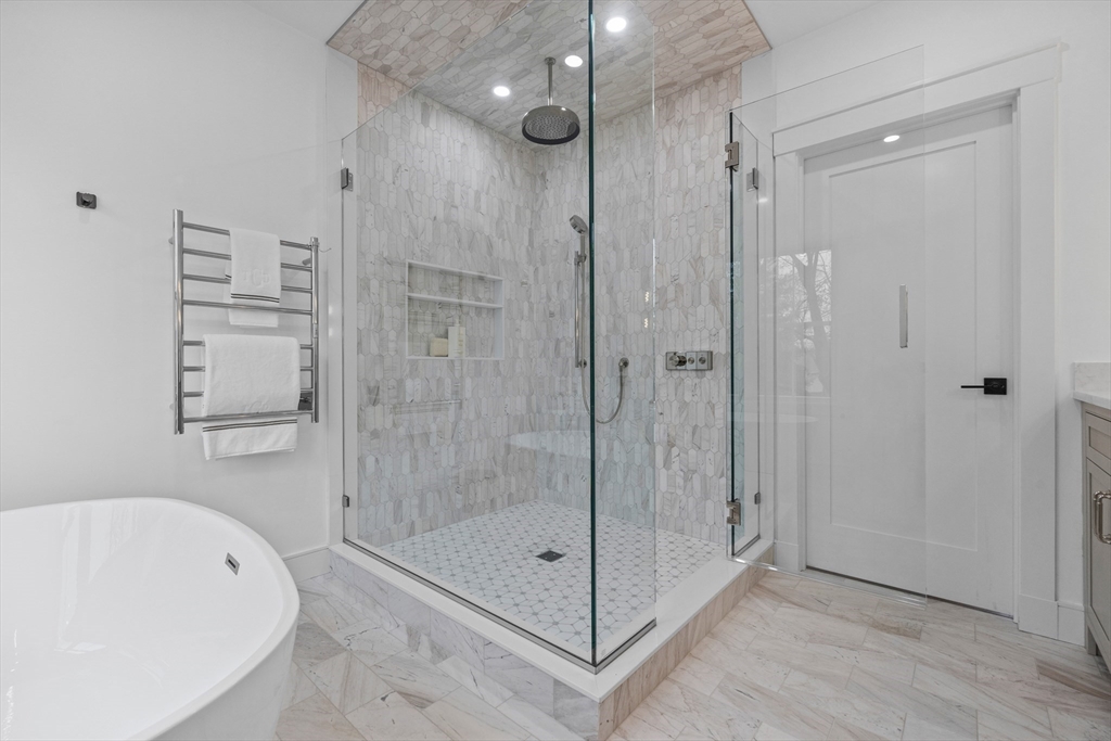 Brand-new construction with classic New England shingle-style architecture and modern luxury, offering 4,600 sq. ft. in one of Newburyport’s most desirable neighborhoods. Featuring 4 bedrooms, 4.5 baths, and a 2-car garage, this home blends timeless curb appeal with thoughtful design. The gambrel roofline, cupola, copper accents, and welcoming front porch reflect coastal New England tradition. Inside, white oak hardwood floors, Anderson windows, and full-house soundproofing showcase quality craftsmanship. Modern mechanicals feature hydronic forced air with 3 climate zones, dual ERVs, and a high-efficiency Navien tankless water heater. Pre-wired for EV charging, solar, security, and whole-home audio. Finished with Hardie shingles, maintenance-free PVC trim, and landscaped grounds. Luxury, design, and location — all aligned in one home that defines Newburyport living.