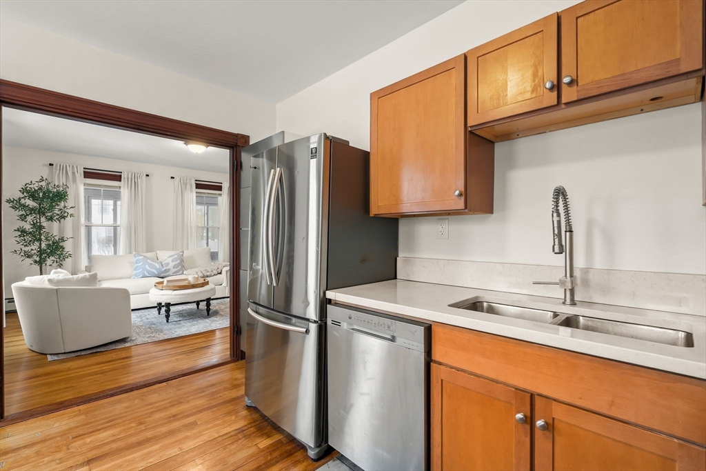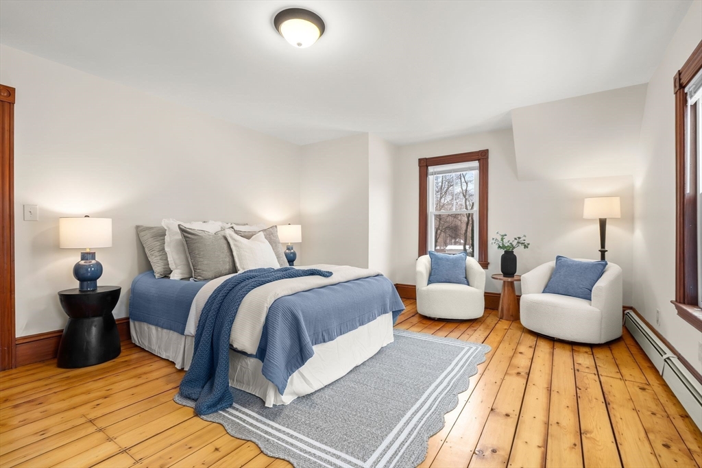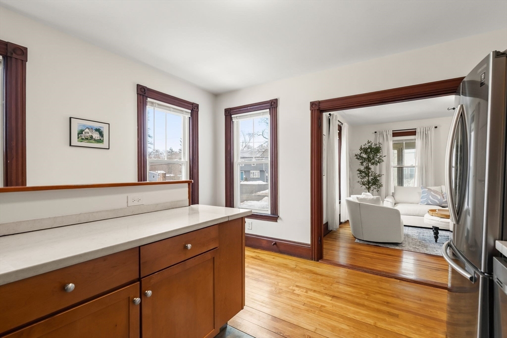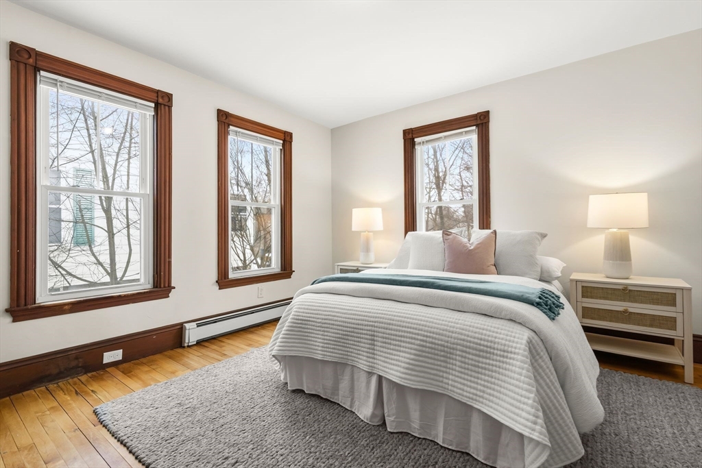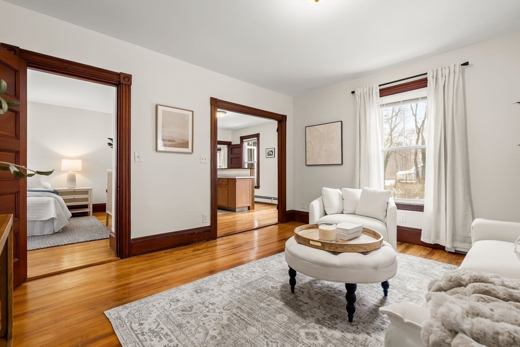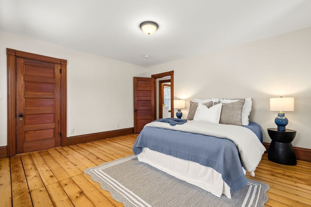 Beautifully updated farmhouse Colonial offering 3 bedrooms, including a convenient first-floor bedroom, and 2 full baths with one on each level. Thoughtfully restored to blend modern updates with original character, this home features refinished hardwood floors, solid wood doors, and striking trim and moldings throughout. The dining room showcases original wainscoting and a charming butler’s pantry, adding to the home’s timeless appeal. Recent improvements include all new windows, flashing, plumbing, electrical, gas heating system (2024), water softener system (approx. $6,000 value), and blown-in insulation (2020) for added efficiency and comfort. Situated on a large, cleared lot with a detached two-car garage, this property offers both space and functionality. Ideally located just steps from the Rockland Rail Trail, approximately 3 miles to highway access, and 2.5 miles to the commuter rail. A perfect blend of efficiency, character, and classic charm.