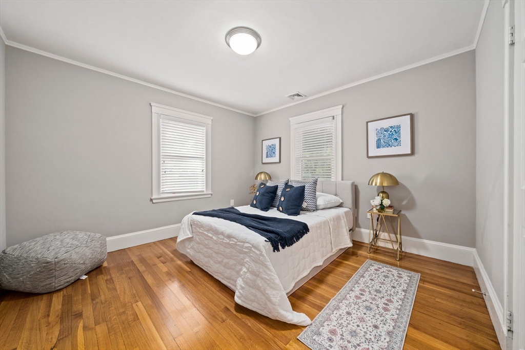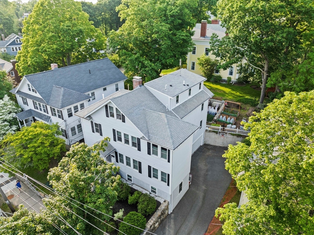 This exceptional four-bedroom home offers nearly 2,000 sq ft across two spacious levels, complete with garage parking. Converted and fully renovated in 2015, it features a thoughtfully designed open floor plan and is meticulously maintained. The kitchen boasts stainless steel appliances, gas cooking, granite countertops, maple cabinetry, and hardwood floors. It flows seamlessly into a sunny living room highlighted by a cozy fireplace and expansive south-facing windows. The main level offers three spacious bedrooms with hardwood floors and a full bathroom. Upstairs, the impressive primary suite includes a walk-in closet, an en-suite bathroom, and a versatile bonus room with custom built-ins that is absolutely perfect for a home office. Step outside to the serene back patio surrounded by beautifully landscaped gardens. Extra private storage space is conveniently located in the basement. Located across from Hosmer Elementary School, this home blends style, comfort, and location.