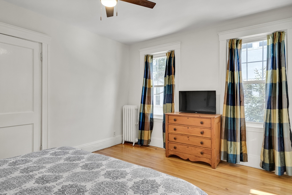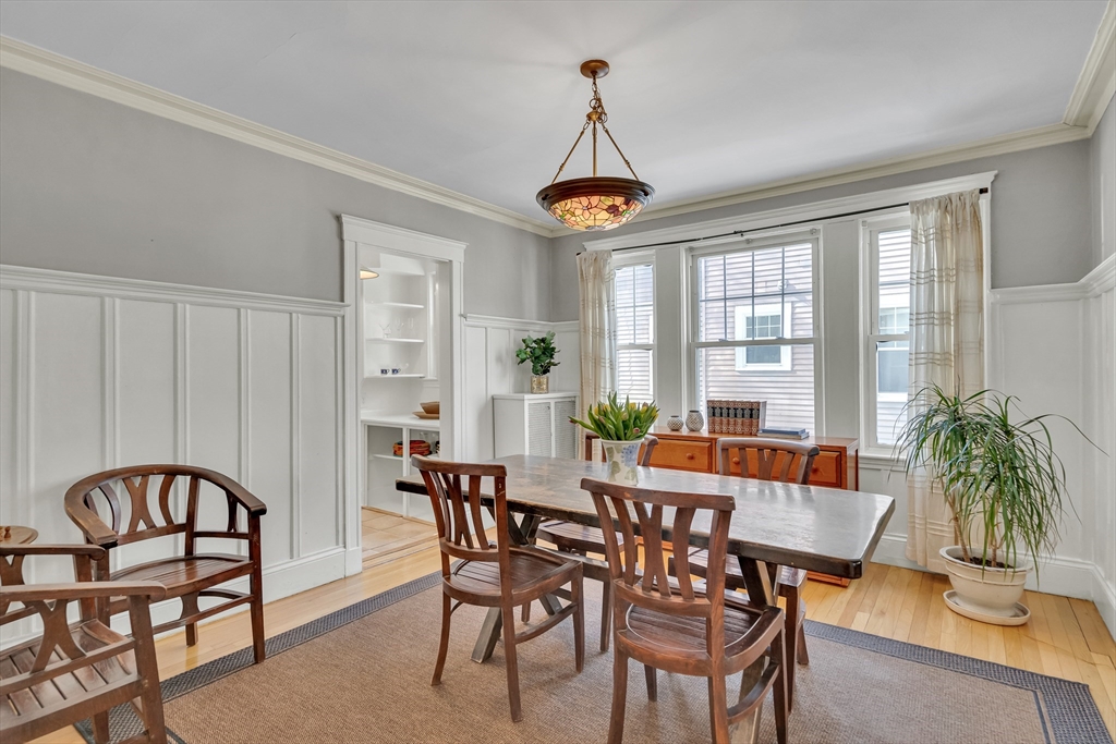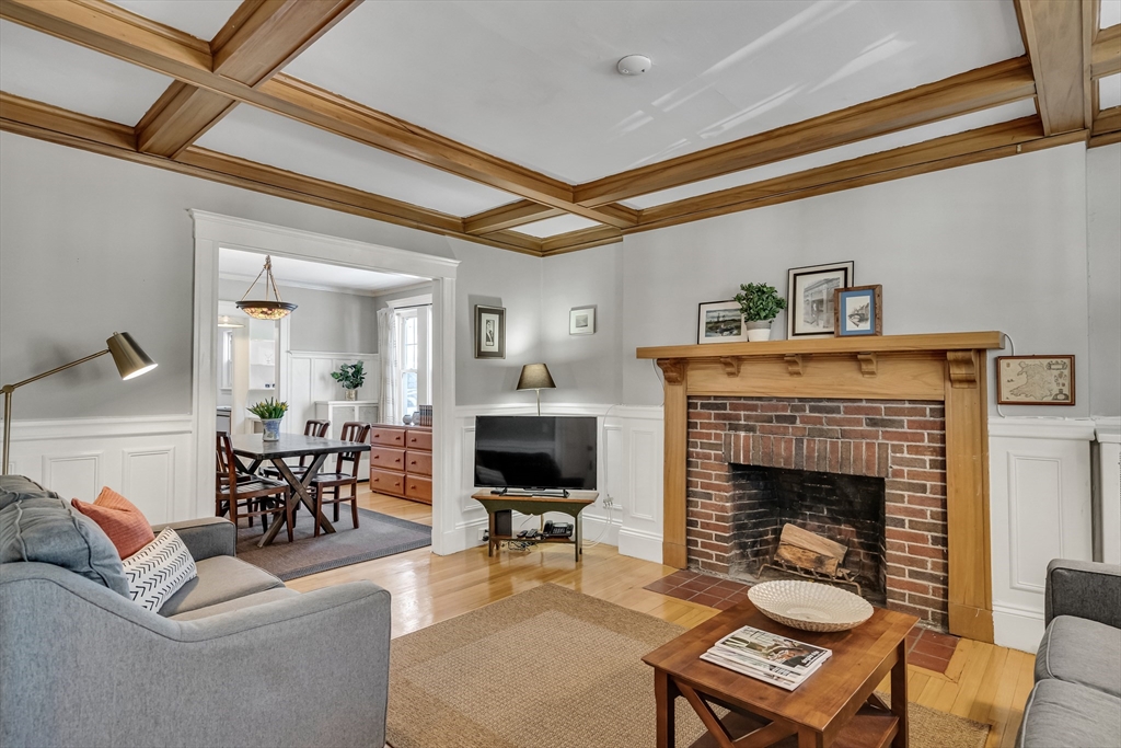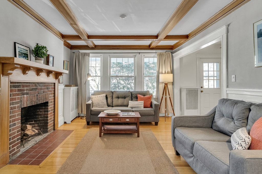 Ideally located in Brookline’s coveted Coolidge Corner, just across from Coolidge Park, this classic Victorian condo offers timeless character with high ceilings, large windows, and beautiful hardwood floors. Enter through your exclusive-use front porch into a gracious front hall. The inviting living room features a coffered ceiling and fireplace, flowing into the spacious dining room accented by wainscoting. The well-proportioned kitchen offers gas cooking and a charming butler’s pantry. Both bedrooms and the full bath are thoughtfully tucked off the central hallway, providing separation from the main living areas. The primary bedroom includes a bonus office or sunroom. Additional highlights include basement laundry and storage, garage parking, and a shared patio. The property has been wonderfully maintained, with exterior painting in 2023. This classic home is ready for your personal updates and custom touches, all set on a picturesque, tree-lined street!