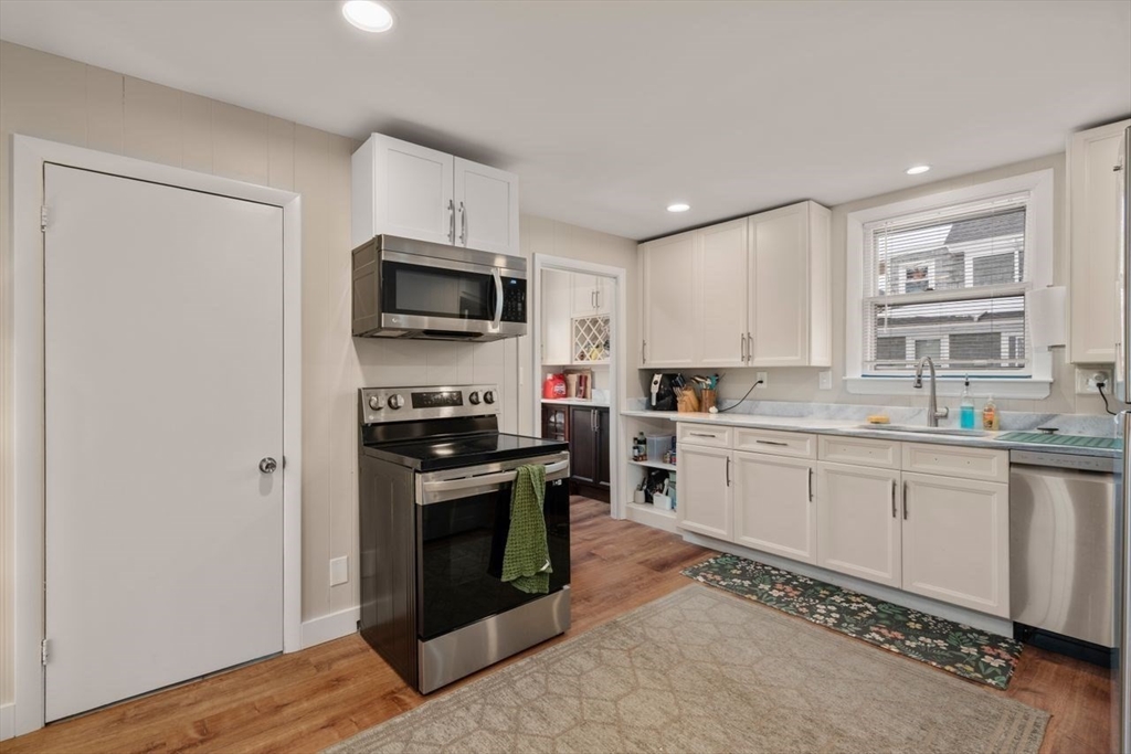 Prime two-family development opportunity with architectural plans in hand to create two 4-bedroom townhouses. Property is currently configured as 2 townhouse-style units, both renovated with high ceilings in the last few years, offering immediate income while planning redevelopment. Front townhouse features 3 bedrooms, 1 full bath, & an office/study with an open-concept kitchen, living / dining area, large bar-style island, quartz countertops, 1 bedroom on the first floor, & 2 additional bedrooms, office, & laundry on the second floor, serviced by gas heat and central air. Rear townhouse offers 1 bedroom, 1 bath, open floor plan with quartz kitchen, full bath & laundry on the main level, second-floor bedroom, with a flexible lower level suitable for office / additional living space. Flat landscaped backyard gardens, two-car garage plus 4+ off-street parking spaces. Ideal for builders, investors, or owner-occupants seeking - turnkey asset with clear redevelopment upside. Near Moody Str.