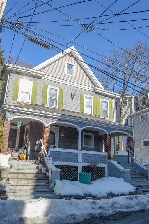 Great opportunity to own a solid structure used for owner occupied and rental for many years. Easy off street parking and welcoming large front porch. Bottom level includes spacious, sunny kitchen, bathroom, 3 bedrooms and living room with hardwood floors. What gives this place charm are the high ceilings and stained glass windows. Second floor unit has separate entrance to a large living room, dining room and kitchen. Two large bedrooms, bathroom, and then bonus top finished floor with bathroom and additional bedrooms. Possible condo conversion and updating will be required to increase value.