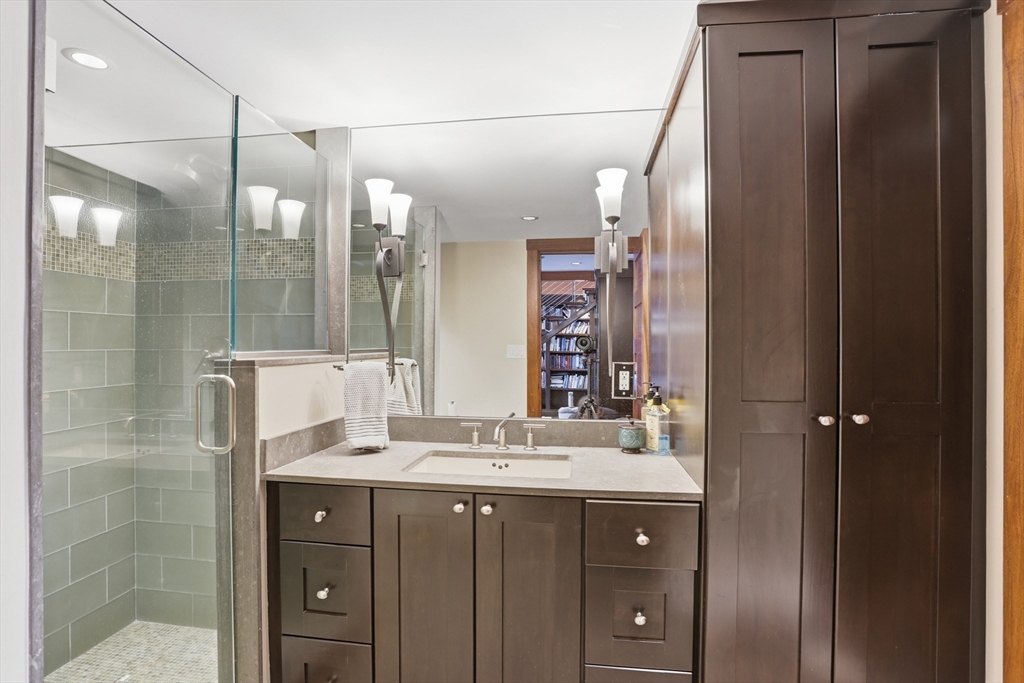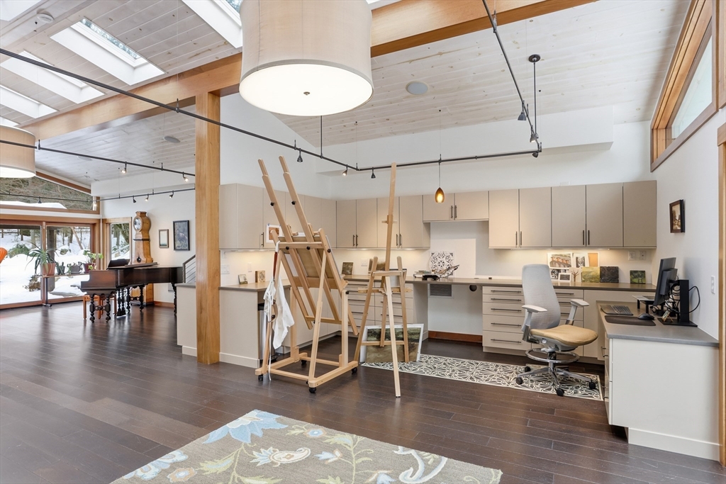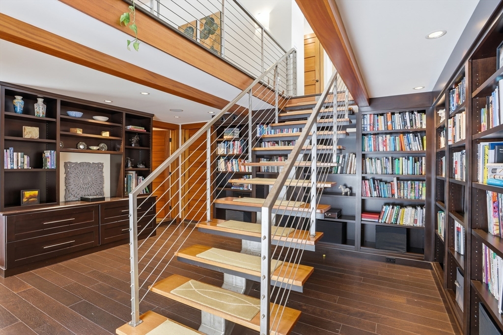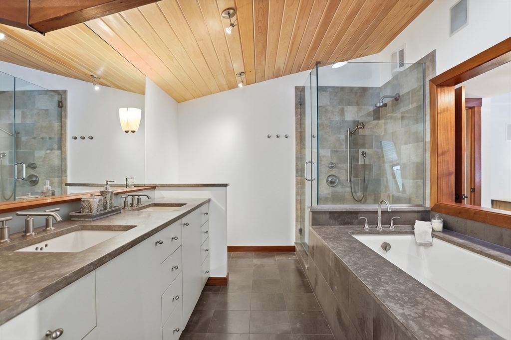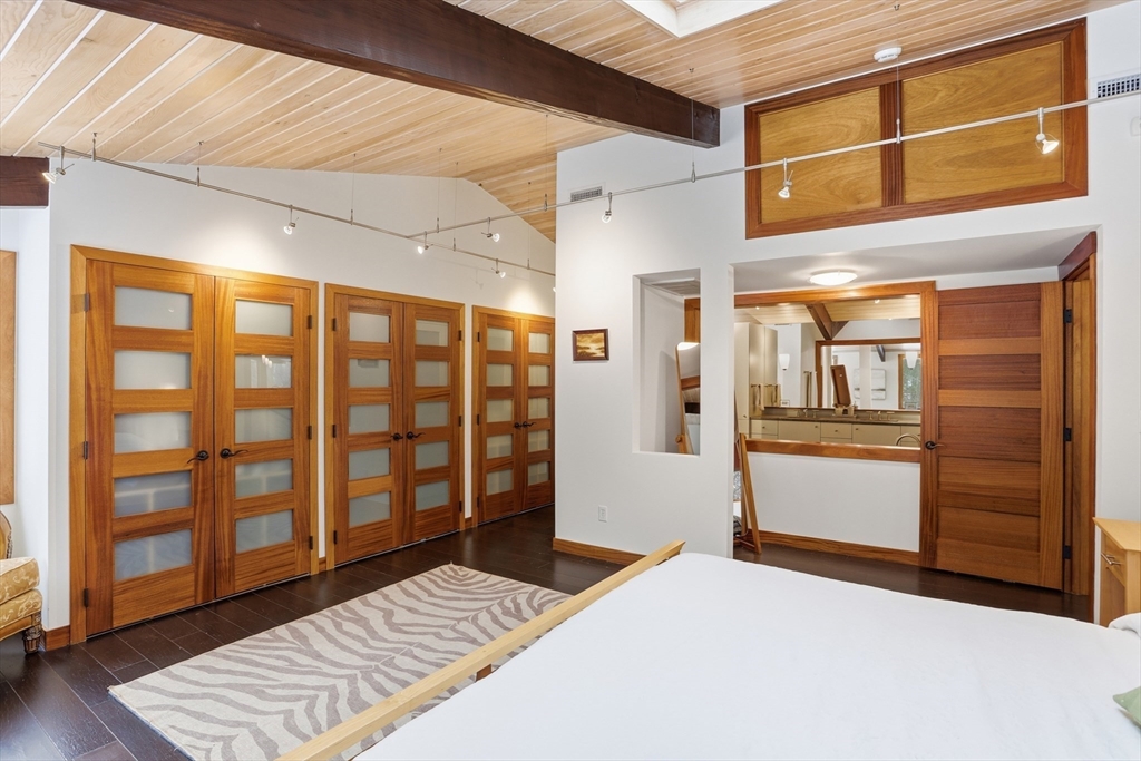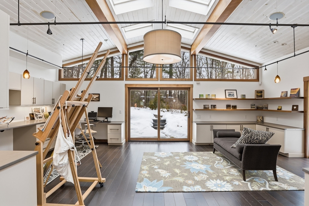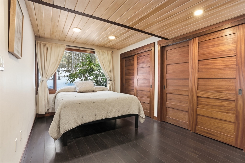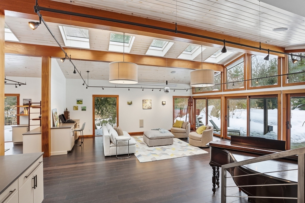 Extraordinary 11-room reimagined Deck Home Contemporary-a masterclass in design & craftsmanship. Stripped to the studs & thoughtfully expanded in 2007, blending Japanese country warmth w/mid-century modern simplicity. Radiant heat throughout, soaring ceilings, exposed beams, solid mahogany doors, skylights, Caerstone & limestone counters create a rare architectural statement. Walls of glass dissolve the boundary between indoors & out, flooding the home w/natural light & serene views. Open living spaces flow effortlessly, offering flexibility for office, gym, media rm or potential ADU. Dramatic wing w/15’ ceilings, 16 skylights & sliders open to a 25x10 pergola-covered patio. Landscape equally as inspiring—featured on the Carlisle Garden Tour—w/Japanese garden, rock outcroppings, specimen plantings, stone walls, expansive deck & heated Gunite saltwater pool. Privately sited on a cul-de-sac. A true value where quality & improvements far exceed the asking price.
