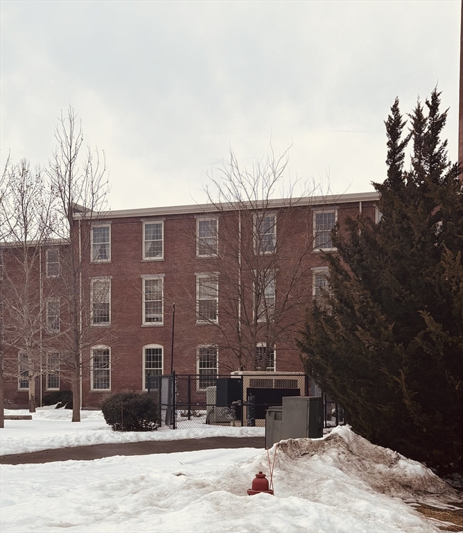 Bathed in natural light and with mill-era charm, Unit 206 at 52 Lawrence Drive is one of the largest units in this historic building. Nearly 1,500 sq ft of living space features soaring wood-beam ceilings, expansive mill-style windows, and two high-set porthole windows that add architectural detail. Enjoy sweeping views of the Merrimack River and Riverwalk. The open-concept layout offers generous living and dining areas, with bedrooms located at opposite ends for privacy. In-unit laundry. Building amenities include an expansive common room, pool tables, fitness area, bike storage, private storage, and deeded parking. Conveniently located near the Commuter Rail, Lowell Connector, restaurants, and shops.