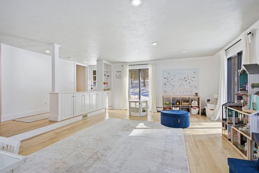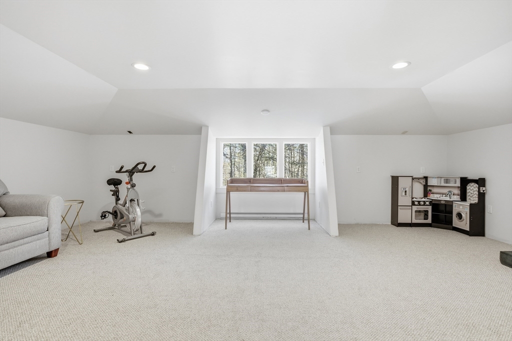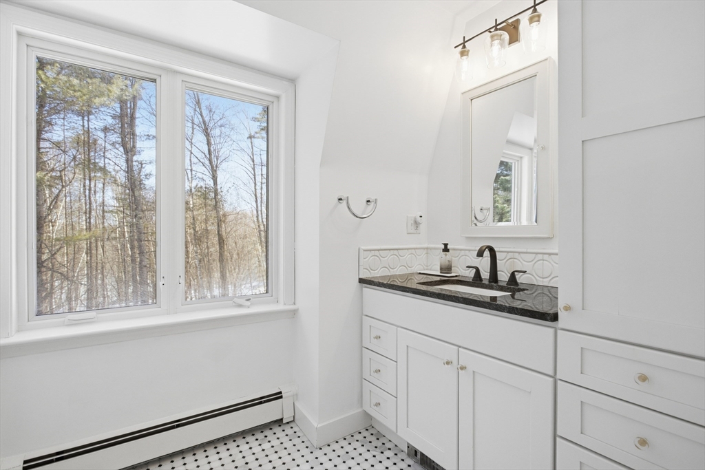 Located in a lovely cul-de-sac neighborhood, this beautifully renovated home sits on a gentle knoll, offering privacy and an elevated setting. Set on 2 picturesque acres, it features 3,626 sq. ft., 4 bedrooms (2 ensuite), and 3.5 baths.The open-concept kitchen, dining, and living room with fireplace is ideal for everyday living and entertaining. The renovated kitchen showcases modern finishes, Wolf double ovens, a Miele refrigerator, quartz countertops, and two expansive islands. A spacious family room, first-floor laundry, and two staircases enhance both function and flow. A finished bonus room above the garage offers versatility for a home office, playroom, or gym. Updates include renovated baths, new roof, new HVAC, and more—see the attached Improvements List. A rare turnkey opportunity with space, privacy, and exceptional upgrades throughout.