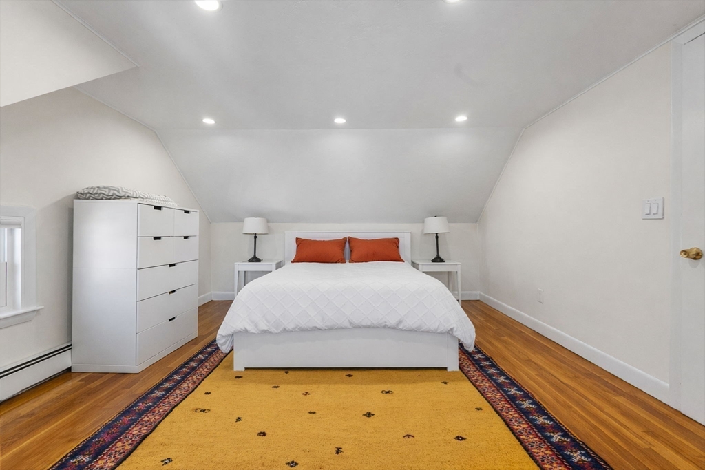 Nestled on .32-acre lot in prime Milton location, this stunning 4-bedroom Colonial perfectly blends classic New England charm with expansive living across 4 finished floors. True pride of ownership shines through extensive recent improvements. The main level features a bright and airy flow, seamlessly connecting a sleek modern kitchen to a formal dining room and a spacious family room, highlighted by an exquisite fireplace and wood mantel, that leads to the recently converted home office. The upper levels offer 4 well-appointed bedrooms and 3 updated full bathrooms, including a primary ensuite, plus a versatile 2nd floor bonus room. A finished basement with half bath provides the perfect flex space for a gym or play area. The oversized, fenced-in backyard with adjoining patio is a defining feature of the home, providing sprawling and tranquil privacy. Complete with a detached garage and steps to Glover, Pierce and Goddard Schools, Turner’s Pond and Kelly Park.