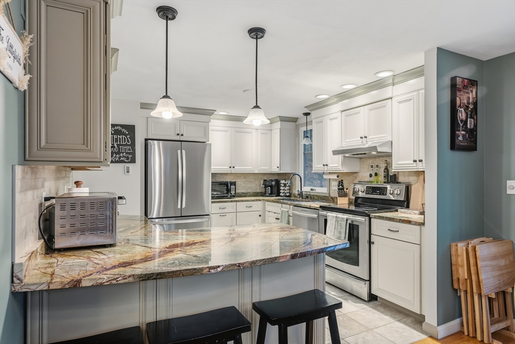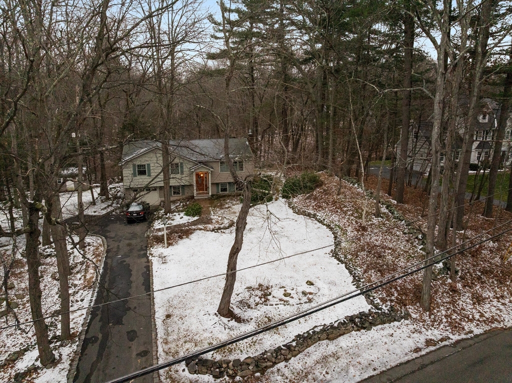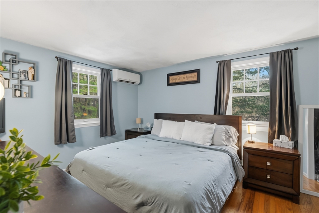 Set back on a scenic country road in the Forest Street area of desirable North Andover - known for its top-rated schools - this charming split-level home sits on a private 1.12-acre lot offering a peaceful, wooded setting. Located just minutes to the historic Old Center and close to local amenities, this home blends convenience with privacy. The main level features a sun-filled living room with a stunning oversized bay window, a beautifully updated kitchen with detailed cabinetry, granite countertops, and stylish backsplash, plus a dining area ideal for gatherings. Warm, inviting tones throughout create a cozy feel you’ll love coming home to. This level also includes two bedrooms and 1.5 baths. The lower level offers a second living area, additional bedroom, and laundry—perfect for guests, office space, or flexible living. Mini splits installed January 2024 for efficient heating and cooling. Don’t miss this opportunity—schedule your private showing today!
