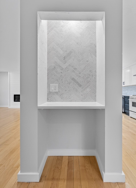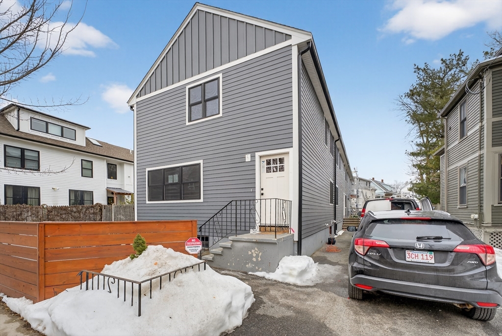 LESS THAN A 5 MINUTE TO THE GREEN LINE. PRISTINE CONDO QUALITY THREE BEDROOM TOWNHOUSE WITH 2.5 BATHS. Winter Hill location with approximately 1,500 sq ft of living area. Two thoughtfully designed levels. Bright, expansive living space where brand-new hardwood floors and a beautiful gas fireplace. Oversized windows flood the home w/ natural light. Updated kitchen blends style and function w/ sleek cabinetry, tile backsplash, quartz counters, gas cooking and a true dining area that feels connected yet distinct. Private rear balcony offers an easy outdoor escape. Upstairs has 3 spacious bedrooms including primary suite featuring a spa-like bath and generous closet space. Central A/C for summer comfort plus a full basement w/ W/D and dedicated storage. 1 off-street parking space. Minutes to Gilman Sq Green Line, Community Path, Foss Park, Assembly Row & Union Sq with easy access to Boston & Cambridg