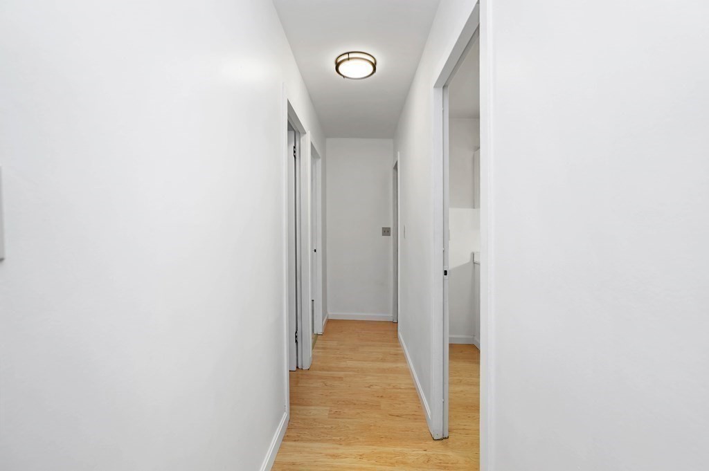 Come check out this beautiful recently renovated condo in the desirable sought-after neighborhood of Brookline Village. This unit is located on a dead-end, tree-lined st bordering Lafayette Pond. The condo is spacious and features 822 SqFt. Upon entry leads into an open concept that includes, freshly painted white walls and ceiling, gleaming blond floating floors throughout, new light fixtures, a sunny and bright living room, dining area, enclosed sunroom, that could be utilized as a third bedroom, fitness room, or office, and an updated kitchen with a new stove. This property has 2 bedrooms, the master bedroom has a walk-in closet perfect for storage, 1 full bathroom, and an abundance of closet space. Amenities are as follows: 1 deeded parking space, a large shared storage room, laundry in-building, a rentable recreation room, and access to The Brook House Outdoor Pool on Tuesdays and Thursdays. .8 of a mile from the Longwood Medical Area, easy access to public transit and highway!