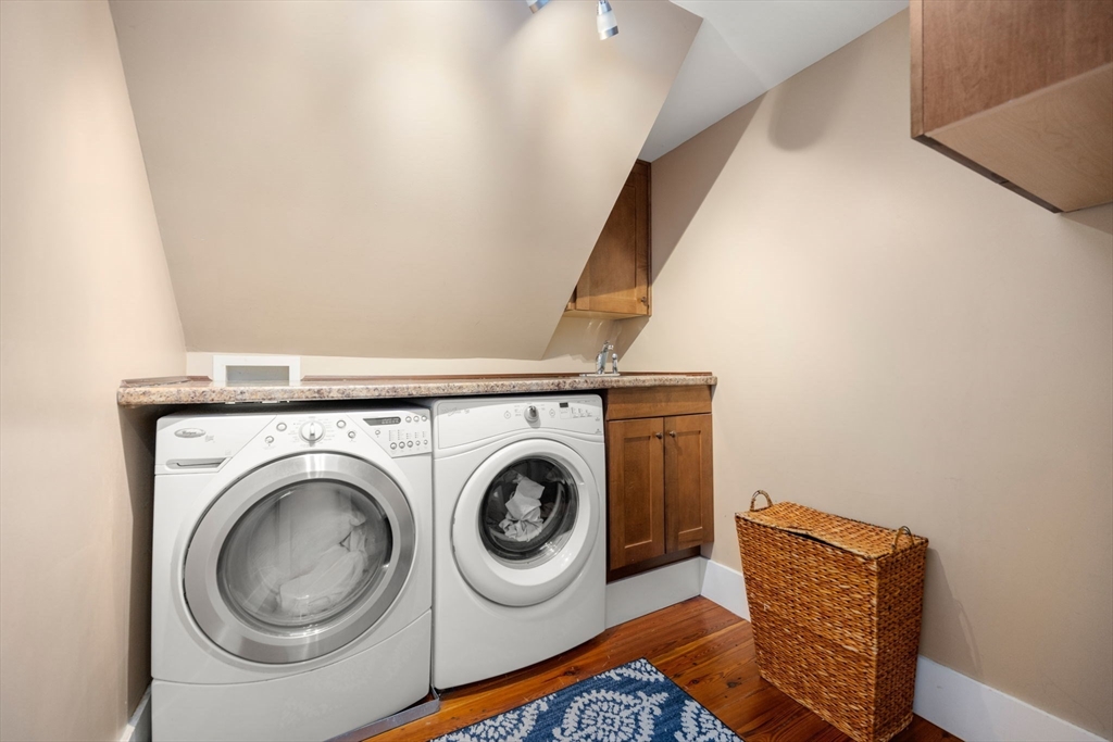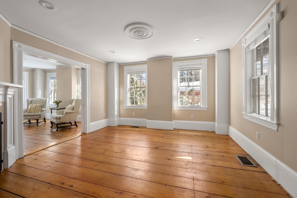 Known as the White–Dickey House, this Greek Revival–style cottage built in 1844 offers a rare blend of authentic antique charm and thoughtful modern updates. Original triple-hung first-floor windows with wavy glass, wide pumpkin pine floors, and period moldings highlight its heritage, while an updated floor plan suits today’s lifestyle. Features include 5 bedrooms, 3 full baths, and a first-floor powder room, second-floor laundry, and a secondary staircase. Banquet-size dining room and remodeled eat-in kitchen with white cabinetry, granite counters, stainless appliances, and breakfast bar open to a sun-filled family room with wood-burning fireplace. Multiple living spaces for entertaining or office. Two HVAC systems, fresh basement storage, screened porch, mature landscaping, cheerful yellow exterior, and great curb appeal. Walkable village location near town center, rail trail, library, and sidewalks.