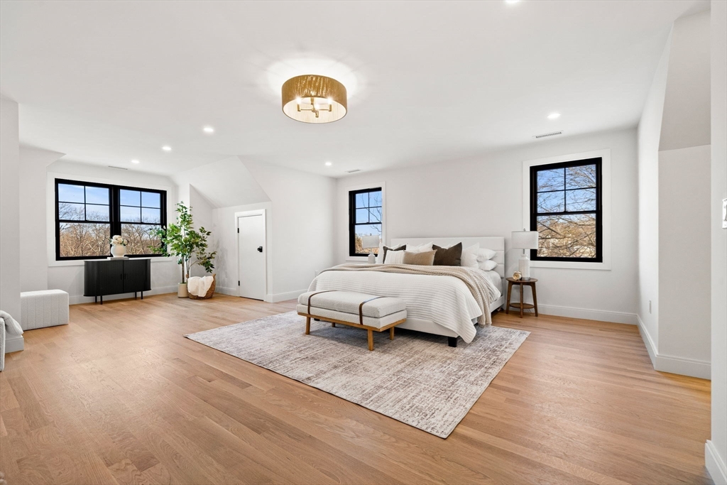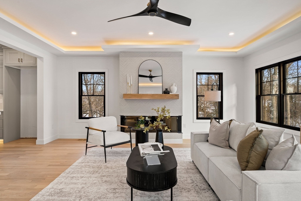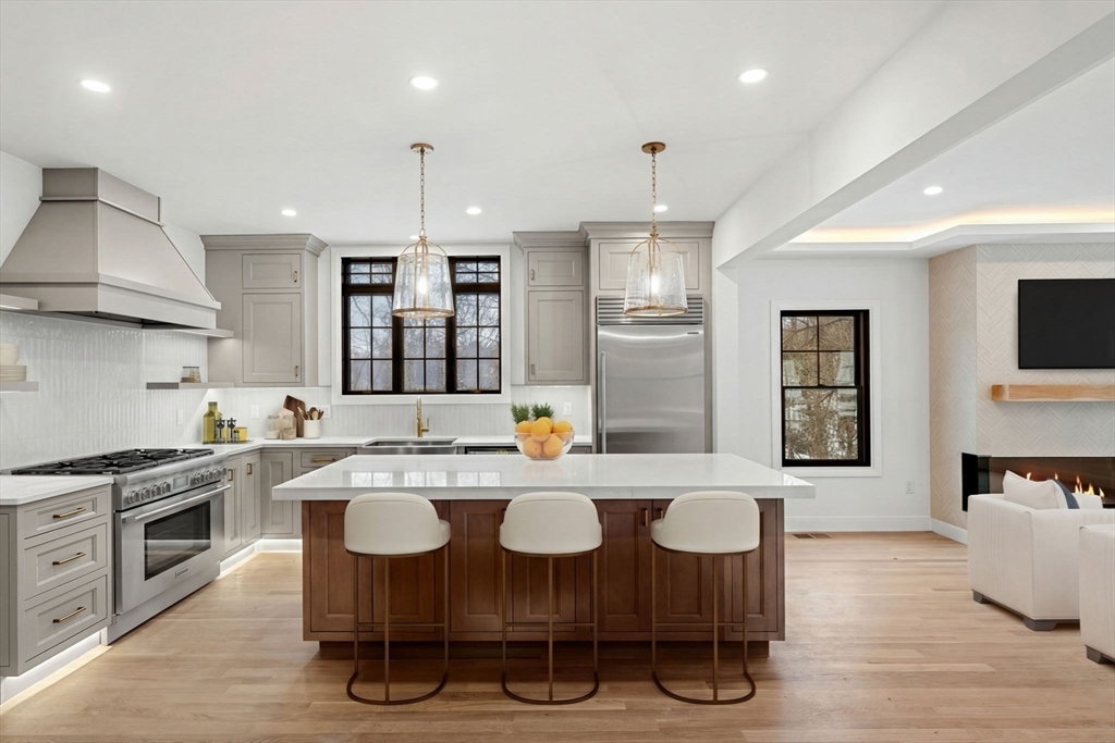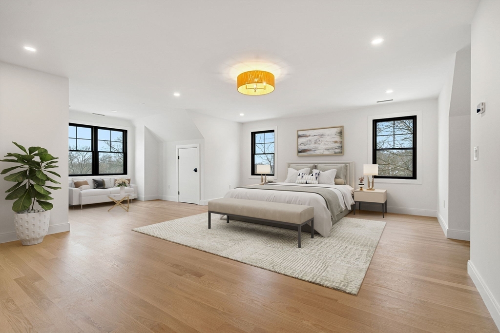 Introducing 310 Beech Ave, a luxury new construction residence offering nearly 4,900 sq ft across four impeccably designed levels in a prime Melrose location, minutes to downtown shops, restaurants, parks, Starbucks, and Whole Foods. A two-car garage opens to a finished lower level with a full bath and flexible space ideal for a gym, theater, or bonus room. The main level is built for elevated living and entertaining, featuring an open-concept chef’s kitchen with Thermador range, Sub-Zero refrigeration, a large mitered-edge center island, full butler’s pantry, formal dining room, home office, and a rare main-level junior suite. Warm foot-well lighting adds ambiance throughout the home. The second floor offers a stunning primary suite with spa-like bath, sitting area, and oversized walk-in closet, plus two additional bedrooms. The third floor provides bonus space and an additional bedroom, perfect for guests or work-from-home. Four zones of HVAC ensure comfort on every level.