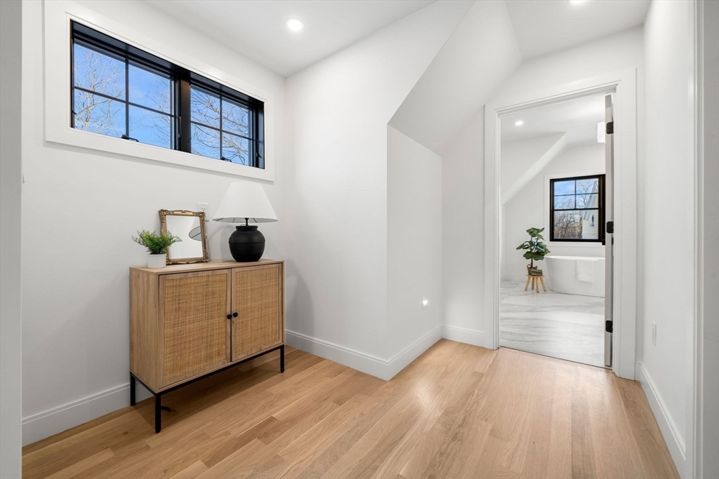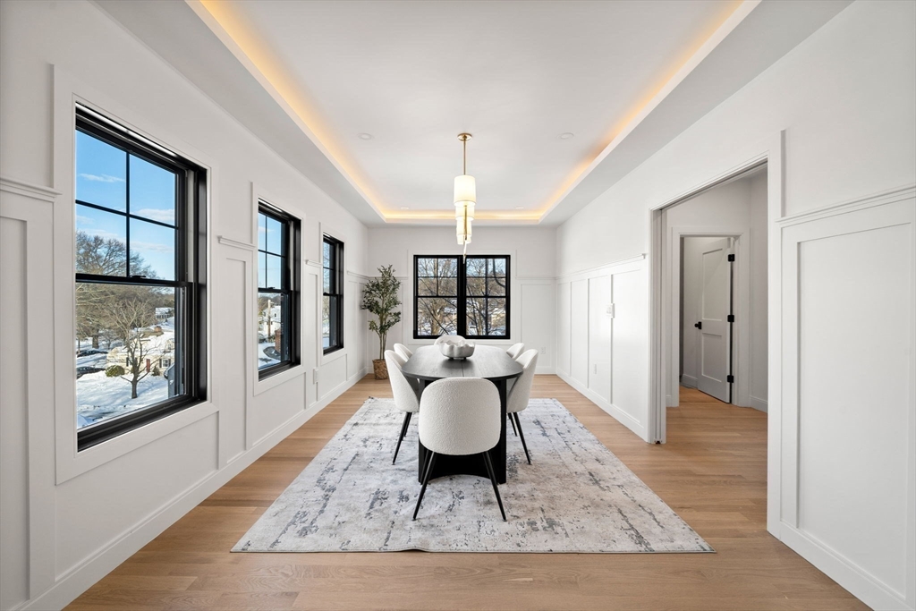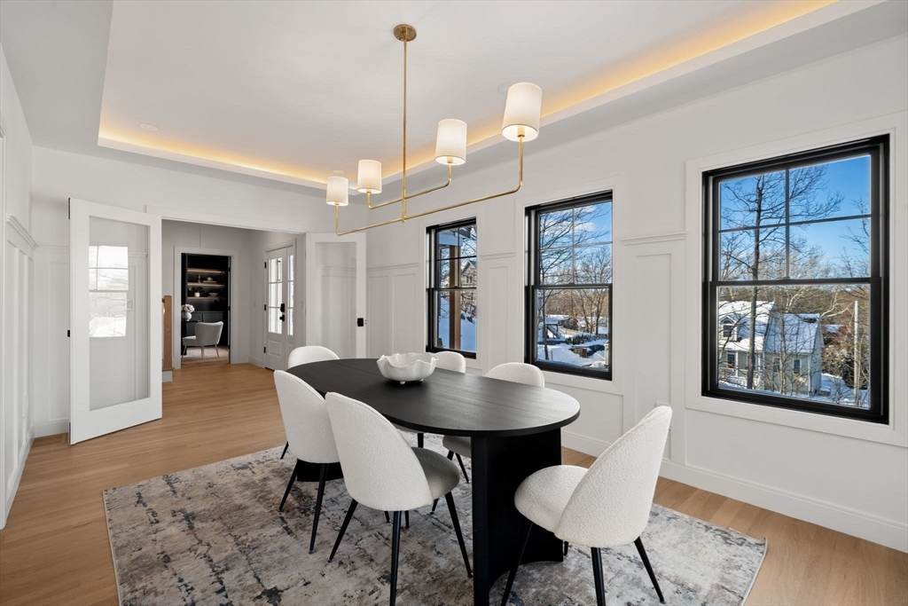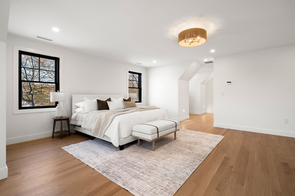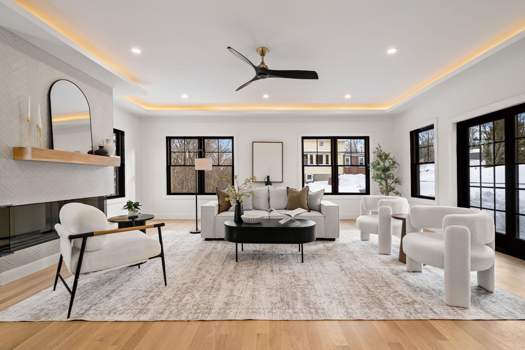 Introducing 310 Beech Ave, a luxury new construction residence offering nearly 4,900 sq ft across four impeccably designed levels in a prime Melrose location, minutes to downtown shops, restaurants, parks, Starbucks, and Whole Foods. A two-car garage opens to a finished lower level with a full bath and flexible space ideal for a gym, theater, or bonus room. The main level is built for elevated living and entertaining, featuring an open-concept chef’s kitchen with Thermador range, Sub-Zero refrigeration, a large mitered-edge center island, full butler’s pantry, formal dining room, home office, and a rare main-level junior suite. Warm foot-well lighting adds ambiance throughout the home. The second floor offers a stunning primary suite with spa-like bath, sitting area, and oversized walk-in closet, plus two additional bedrooms. The third floor provides bonus space and an additional bedroom, perfect for guests or work-from-home. Four zones of HVAC ensure comfort on every level.