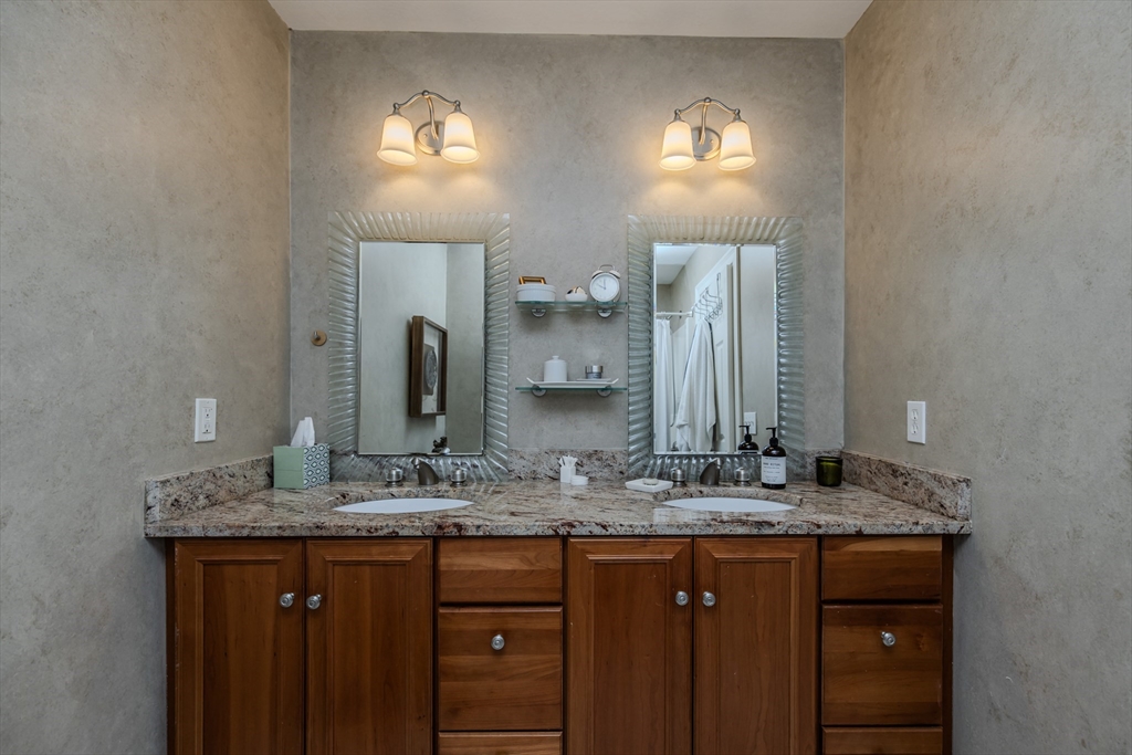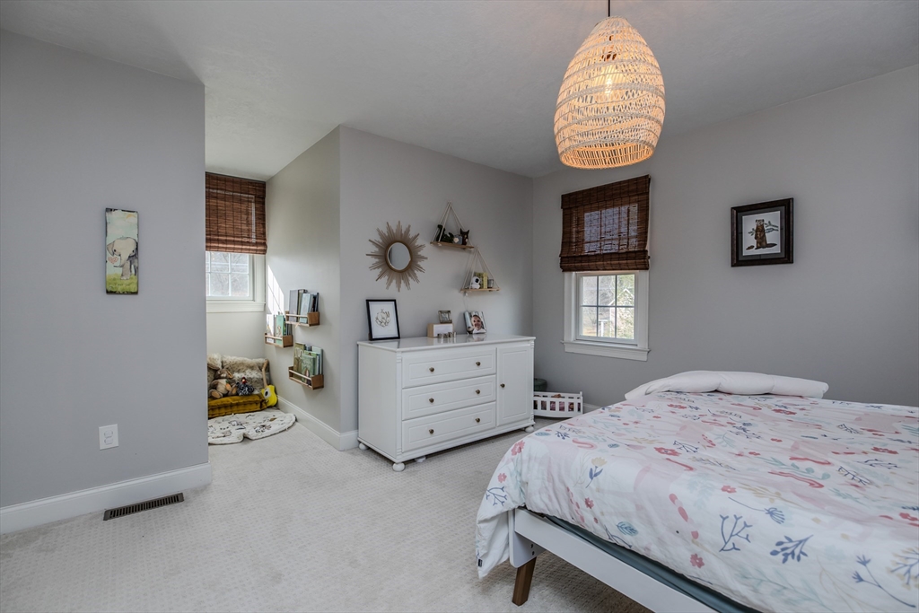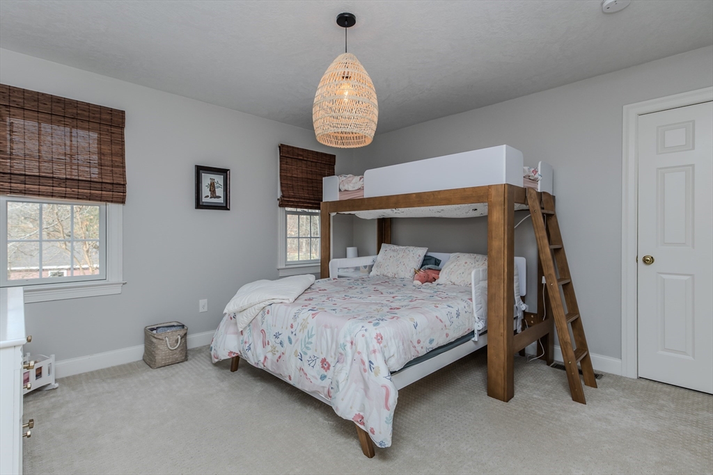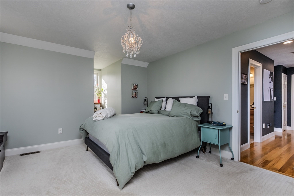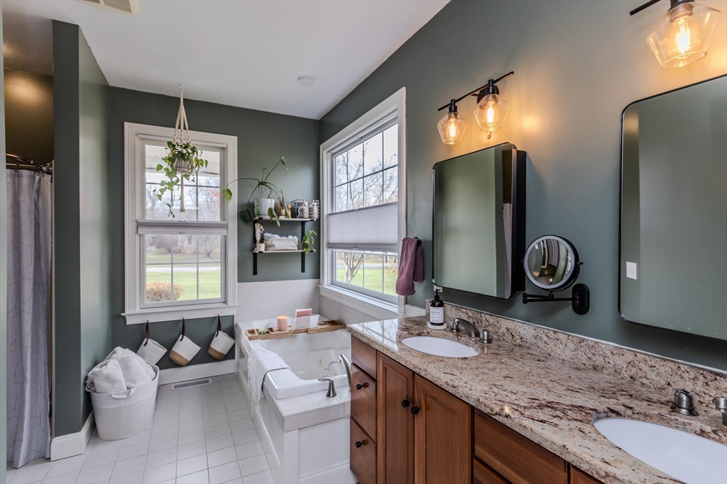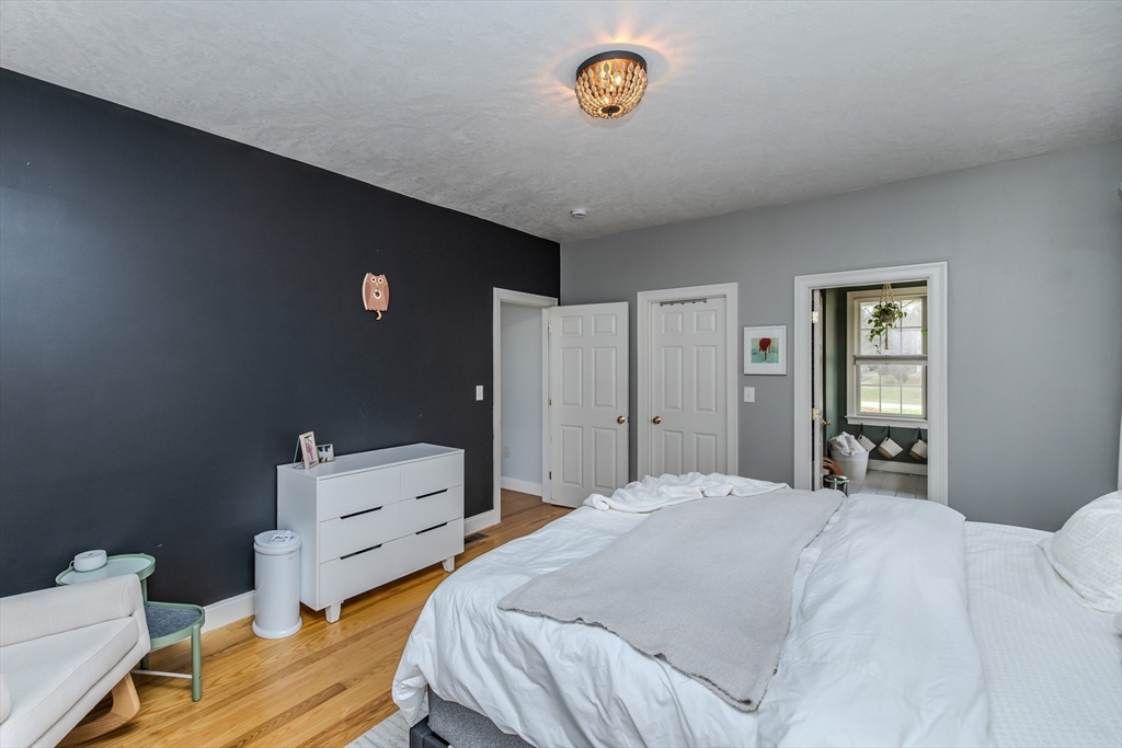 OFFER DEADLINE: Highest and best offers due Monday at 7p. Just perfect. Custom Cape w/attention to detail, style and design within walking distance to S. Hadley Center. Gorgeous, light-filled living room with cathedral ceiling, ash hardwood flooring, gas fireplace and a wall of sliders that open to the patio overlooking the fenced yard. The fully applianced kitchen features upgraded cabinets, newer quartz countertops w/ peninsula and breakfast area. First floor primary bedroom with en-suite bath features Jacuzzi tub, sep. shower & walk-in closet. Formal dining room, dedicated laundry and half bath complete the 1st fl. 2nd FL features two bedrooms, full bath w/ tub/shower, and balcony overlooking the living room. Second stairway will lead you to the family room. Finished basement offers bonus room with electric fireplace, and gorgeous half bath. Trane furnace (2019 apo), central A/C, oversized 2-car garage, central vac, shed, irrigation system & more!
