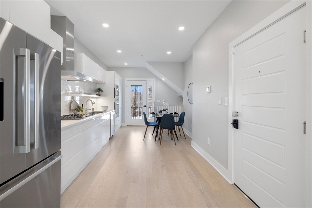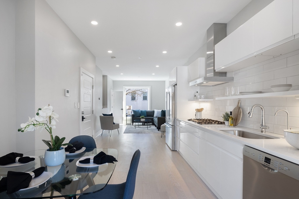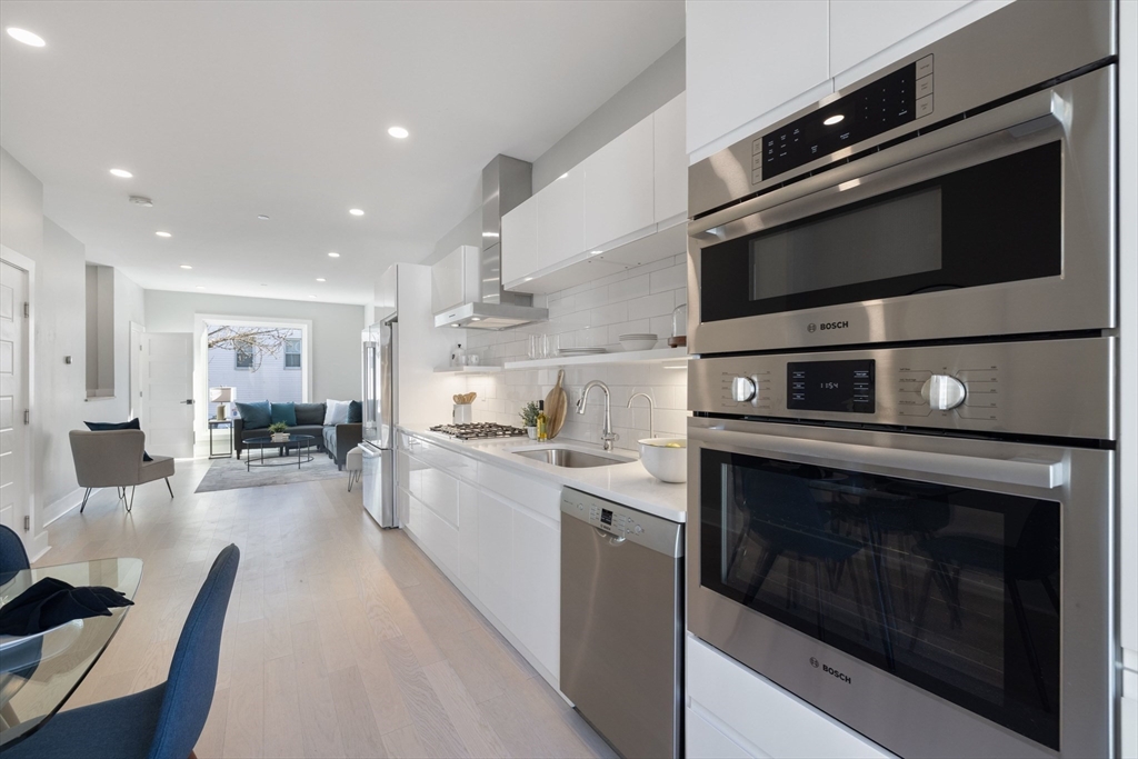 This sun-filled 2 bed, 1.5 bath condo, located in the Jeffries Point Neighborhood of E. Boston, blends modern design with everyday convenience. The open layout feels airy and bright, with wide-plank floors, oversized windows, and a sleek chef’s kitchen featuring quartz counters, gas cooking, stainless appliances, and clean-lined cabinetry. The spacious living and dining area flows seamlessly to a private balcony perfect for morning coffee or evening unwinding. Two well-proportioned bedrooms offer great closet space, complemented by a full bath with modern finishes and a stylish half bath for guests. Includes 1 assigned off-street parking spot. Less than half a mile to the Blue Line and Ferry to Downtown, with Logan International Airport under a mile away. Modern comfort, effortless commuting, and neighborhood charm - all in one exceptional Jeffries Point address.