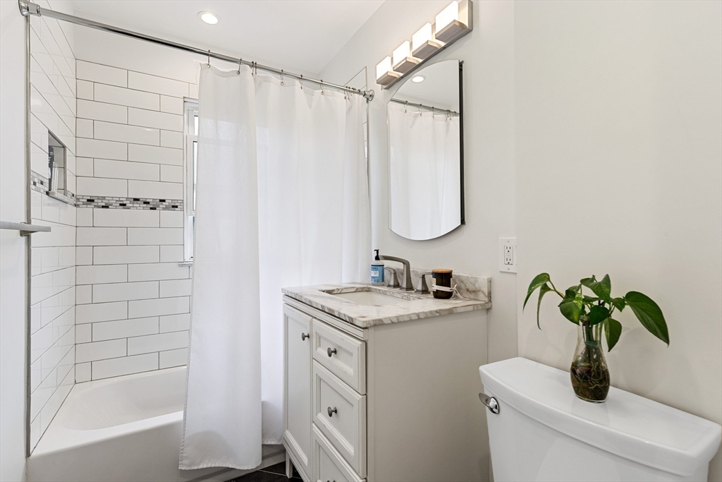 Historic charm meets contemporary updates in this turnkey 4BD/2BA classic colonial featuring renovated interiors and a fenced yard in the heart of Arlington. Inside, tall ceilings soar above newer hardwood and tile floors, fresh paint, lovely millwork, and updated windows with custom blinds. Enjoy a seamless flow from a sunroom with bench seating and heated floors to a grand foyer, spacious living room and large dining room. Cooks will love the renovated kitchen’s white cabinetry, solid countertops, tile backsplashes and stainless steel appliances. A new full bath and rear mudroom complete the main level. Above, you’ll find four large bedrooms with roomy closets and a windowed full bath. Outside, the corner property features a paver patio and lawn area surrounded by new fencing, landscaping and a shed. Newer roof, electrical, insulation, oil tank, HVAC, windows, baths, sunroom,and a 2 car driveway with EV charging. Walkable to Arlington Center. Can easily finish attic and basement!