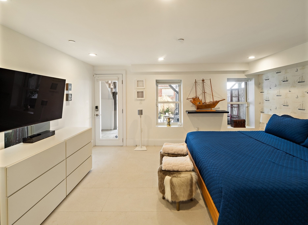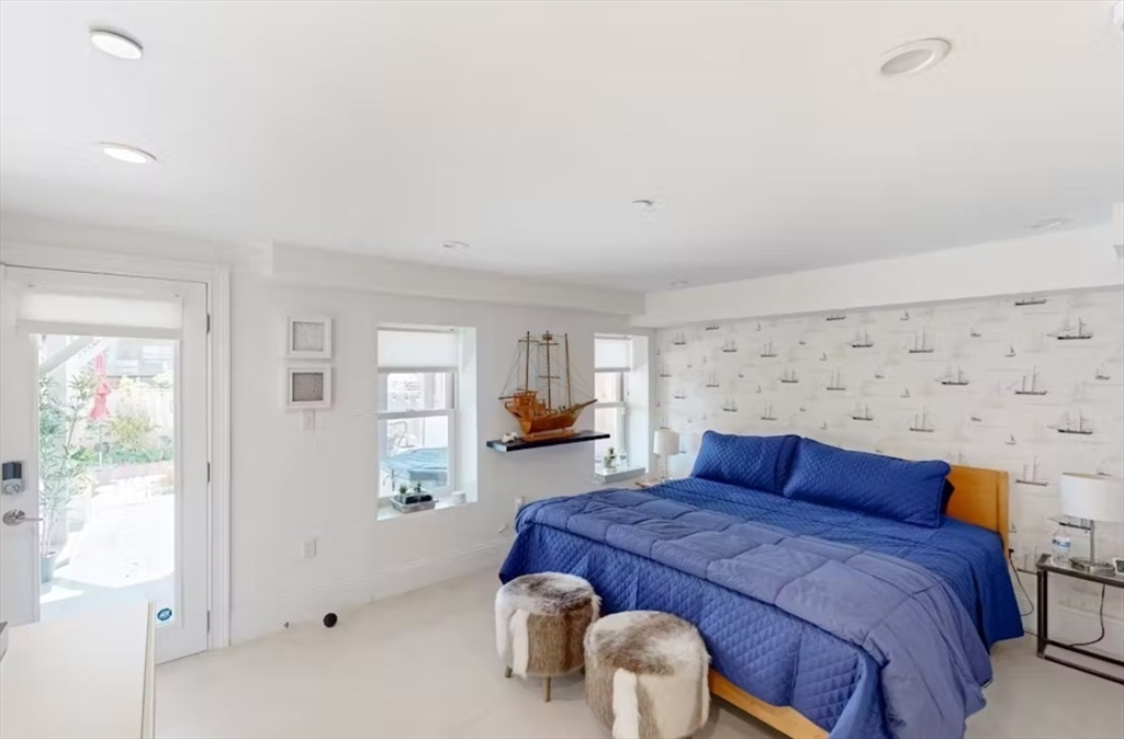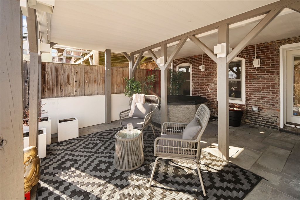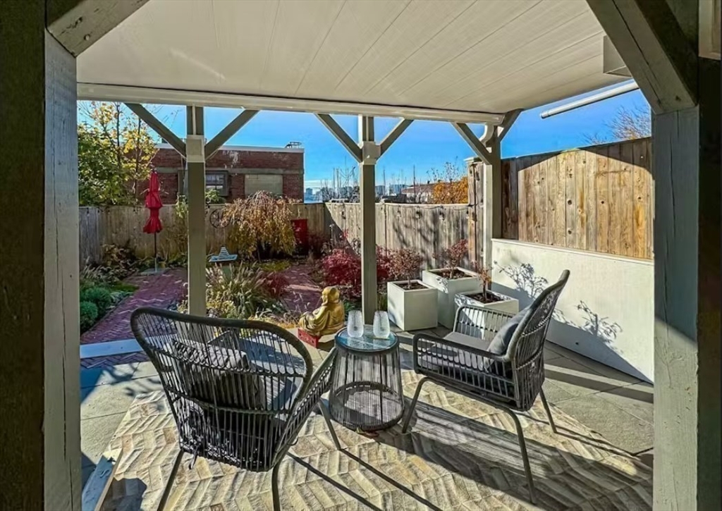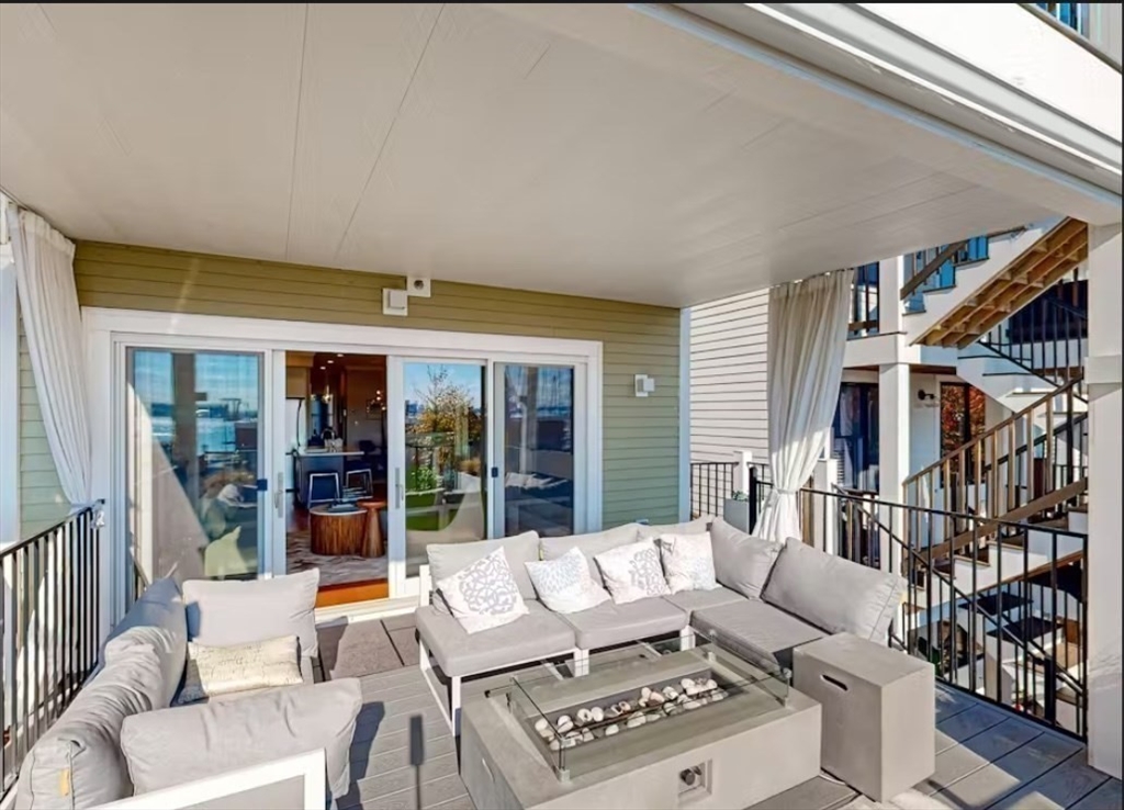 One of a kind Jeffries Point 3 bed/2.5 bath condo featuring 1,544 SF of living space on two levels. This home features harbor views, multiple private outdoor areas including a 240 SF deck, covered porch with jacuzzi tub, and a fenced landscaped garden. The open layout main level is ideal for entertaining, framed by a dramatic wall of glass with skyline views and sleek gas fireplace. The custom kitchen includes an oversized island with seating, white quartz countertops, stainless appliances with gas cooking, an LG refrigerator (2024), and a LG smart dishwasher (2025). A half bath and a serene primary suite with bow window, walk-through closet, and en-suite bath complete this level. The fully renovated lower level (2023) offers two additional bedrooms or flexible living space, a full spa-like bathroom, laundry, ample storage, and 3-zone radiant floor heating. Located steps from East Boston’s waterfront, parks, ferry, dining, and the Blue Line, offering easy access to downtown Boston.