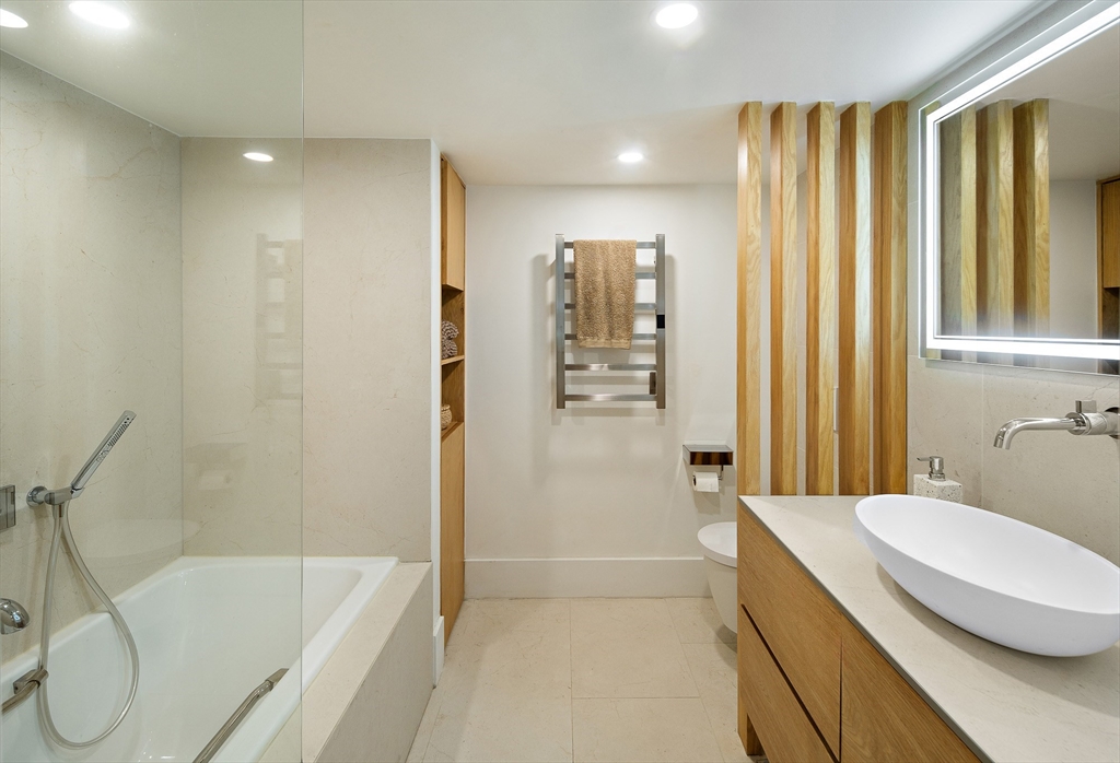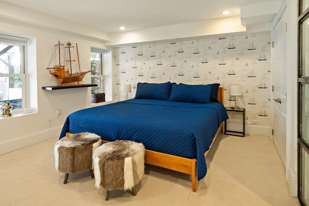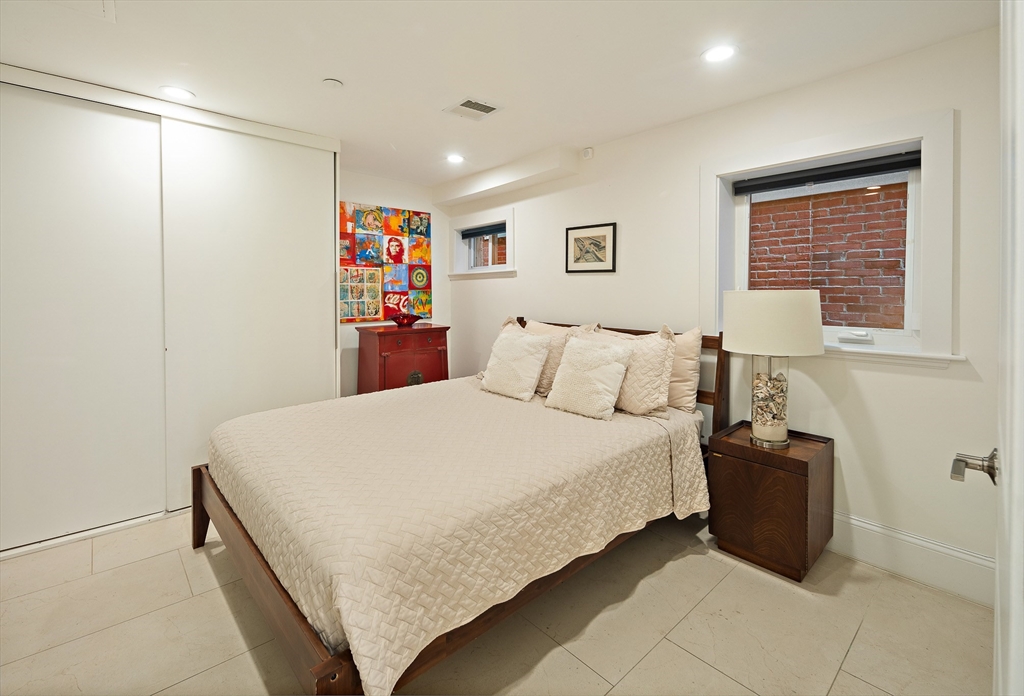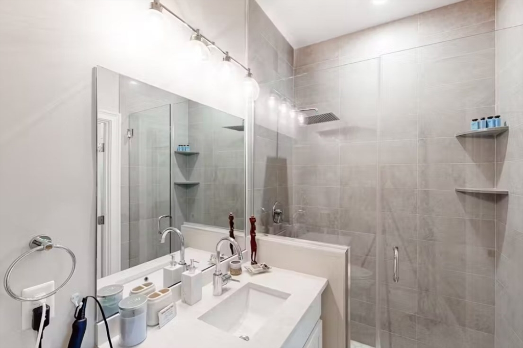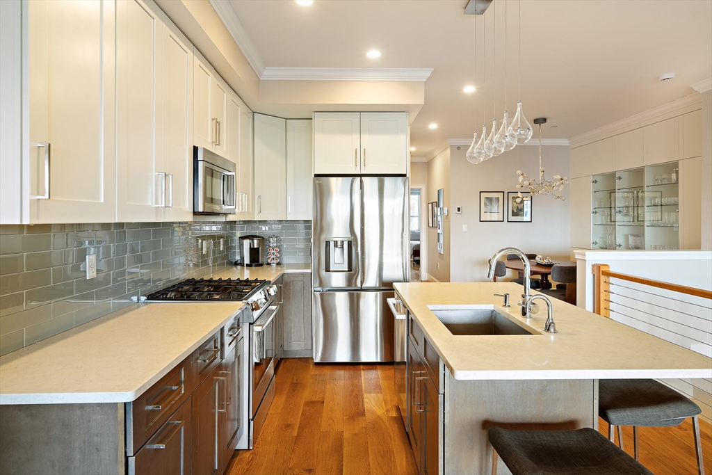 One of a kind Jeffries Point 3 bed/2.5 bath condo featuring 1,544 SF of living space on two levels. This home features harbor views, multiple private outdoor areas including a 240 SF deck, covered porch with jacuzzi tub, and a fenced landscaped garden. The open layout main level is ideal for entertaining, framed by a dramatic wall of glass with skyline views and sleek gas fireplace. The custom kitchen includes an oversized island with seating, white quartz countertops, stainless appliances with gas cooking, an LG refrigerator (2024), and a LG smart dishwasher (2025). A half bath and a serene primary suite with bow window, walk-through closet, and en-suite bath complete this level. The fully renovated lower level (2023) offers two additional bedrooms or flexible living space, a full spa-like bathroom, laundry, ample storage, and 3-zone radiant floor heating. Located steps from East Boston’s waterfront, parks, ferry, dining, and the Blue Line, offering easy access to downtown Boston.