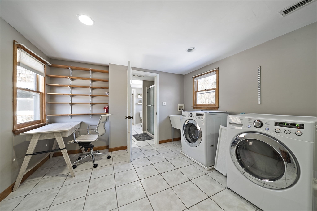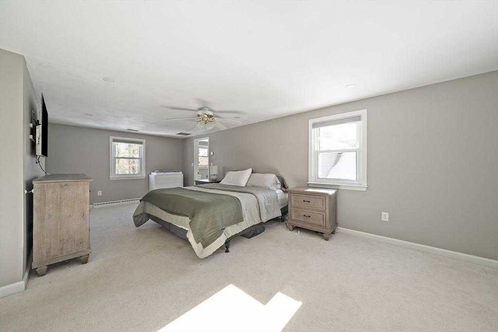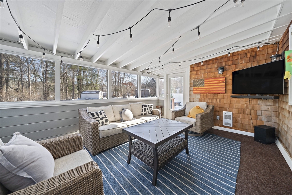 Welcome to 7 Andrew Drive, a beautifully updated home nestled in one of Pembroke’s centermost neighborhoods. This charming property sits on nearly an acre of lush landscaped grounds, offering 3 spacious bedrooms, 2 full bathrooms, and 2 half bathrooms, blending comfort with modern convenience. Discover a first floor that exudes the warmth of home, complete with recessed lighting, a cozy gas fireplace, a bonus room with built-ins, and a 3-season room draped with natural light. The primary suite is a standout feature, offering two generous closets, a full bathroom, and a separate large laundry area that’s as functional as it is versatile—perfectly suited to double as a home office, nursery, or creative space. The newly finished basement is just as versatile and has the added bonus of a half bathroom. Equipped with a 200-amp electrical panel with an interlock generator setup (generator included) and central air conditioning, you are ensured peace of mind year round!