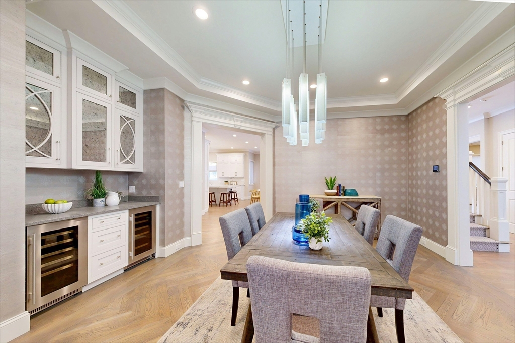 Nestled in a charming neighborhood, this 2016 masterpiece offers an unparalleled combination of elegance and lifestyle. Spanning 5,868 square feet of meticulously finished living space, the home opens with a majestic entrance that leads to a classic dining room complete with custom built-in wine refrigeration. At the heart of the residence lies a professional chef’s kitchen designed for grand-scale entertaining, which flows seamlessly into an expansive family room and out to the lush backyard.The main level is completed by a versatile guest suite or home office with an ensuite bath. Retreat upstairs to the palatial primary suite, featuring a cozy fireplace and a spa-inspired bathroom, alongside three additional spacious bedrooms and three full baths a separate laundry center. The third floor offers a massive flex room and full bath, while the lower level serves as an entertainment hub with a Hollywood-style theater. 3 Bay garage. Set on a rare 21,965SF Lot