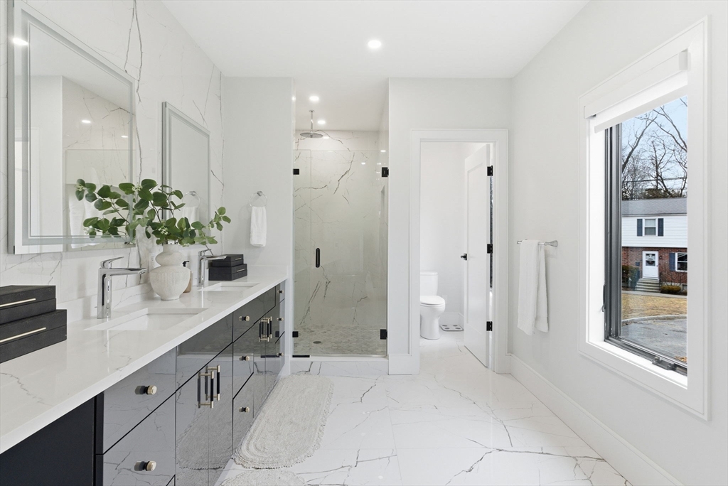 Experience elevated living at 16 Josselyn Place, ideally situated in one of Newton’s most desirable neighborhoods. This exquisite townhome seamlessly blends timeless architectural charm w/ refined high-end finishes. Step into open concept living w/ soaring 10-foot ceilings, rich hardwood floors & generously scaled rooms. The sophisticated chef’s kitchen features top-of-the-line cabinetry & premium Thermador appliances, designed to impress & perform. Just off the main living area, a versatile bonus room with an en suite bath provides the ideal space for a private home office. Upstairs, spacious bedrooms offer abundant closet space, private decks & a beautifully appointed primary suite designed for comfort & retreat. The finished lower level adds exceptional flexibility, perfect for a media room, gym or guest suite. GRAND FINALE is the outdoor space which has undergone a massive upgrade, ideal for relaxing or gatherings. Exceptional design & unmatched location, this home won't last!