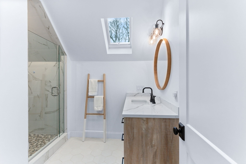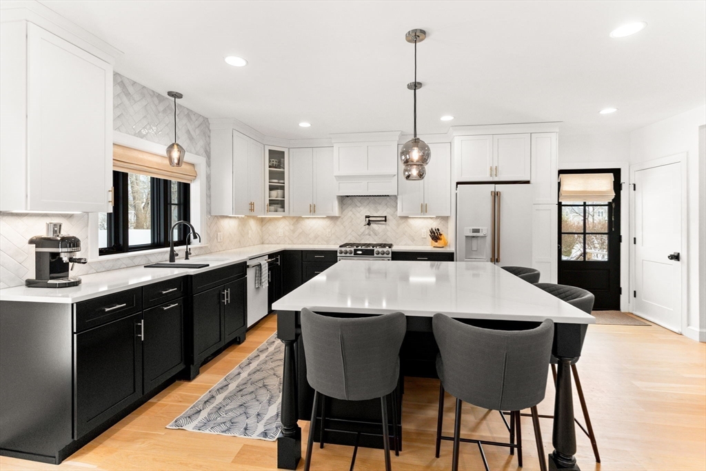 Be prepared to FALL IN LOVE w/this spectacular, newly renovated home! The 1st & 2nd floors were taken down to the studs & rebuilt w/impeccable taste! When you enter you are greeted w/an open floor plan which will surely please even the most discerning buyer! Wait to be WOWED when you enter the dining area & fully appointed kitchen w/6" white oak flooring, custom cabinets, GE Cafe Appliances, pot filler, wine chiller & lots of built-ins! The quartz kitchen island measures approx. 61"x73" & is the focal point of the room, perfect for all your entertainment needs! The living room is complete w/a custom bookcase that frames both sides of the gas fireplace & a beautiful coiffured ceiling. The second floor has 3 bedrooms all w/white oak flooring, recessed lighting & double closets. A beautiful full bath has a stunning tiled shower w/a skylight & quartz countertops rounds out the second floor. Fantastic in town location ~ minutes to K-12 schools, Frothingham Park & downtown.