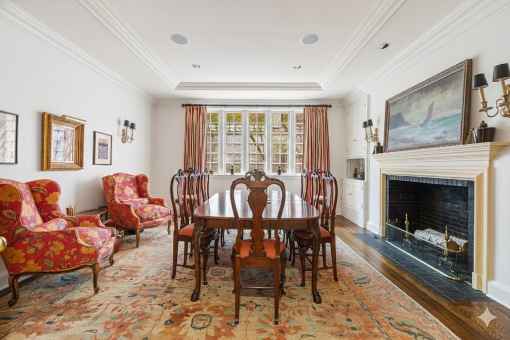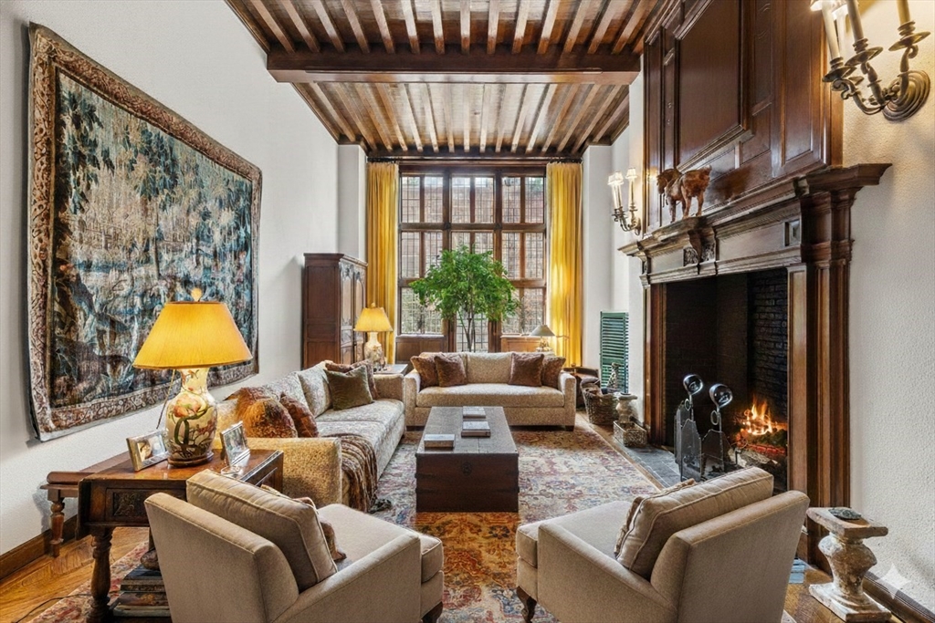 An exquisite city-center residence in an ambiance seeming like a tranquil garden suburb, this one-of-a-kind circa 1914 townhouse by noted architect Richard Arnold Fisher stands on a tree-canopied, block-long street on the Flat of Beacon Hill. Inspired by English traditions, this beautifully livable jewel with six fireplaces has been tastefully restored and renovated by its long-time current owners & features enchanting outdoor spaces on the private garden terrace and a roof deck where 360-degree views take in the gold-domed State House, Back Bay and Downtown. As the showpiece living/entertaining space, the lofty double-storied great room is at once grand and inviting, rising to a beamed ceiling above the luminous window wall, majestic fireplace and library wall with minstrel’s gallery. The garden level’s airy window-walled open space combines the gourmet kitchen and casual living/dining area. The versatile bedroom layout offers the option of creating an expansive full-floor primary!