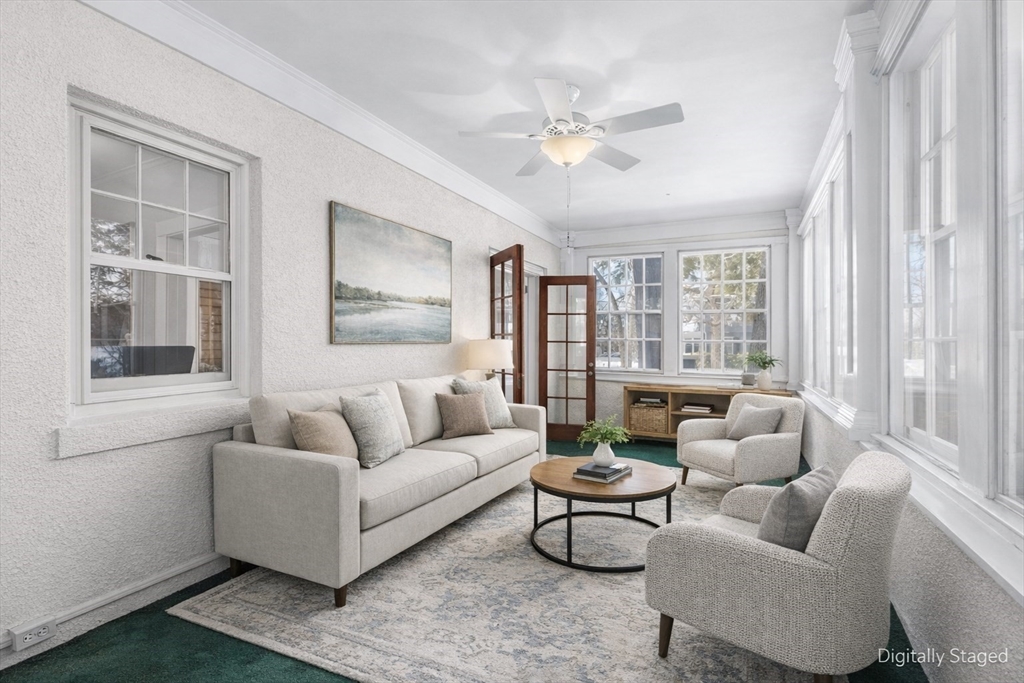 Set on a rare, combined 21,039 sq ft lot in Needham’s coveted Ladder Streets neighborhood, this distinguished Colonial masterfully blends timeless 1920s architecture with thoughtfully curated modern luxury. Offering 3,688 sq ft of living space, the home showcases soaring ceilings, beautifully preserved woodwork, and classic detailing that honor its heritage, seamlessly complemented by refined updates for today’s lifestyle. A stunning 2025 primary bathroom renovation with radiant heat adds a layer of elevated comfort and quiet indulgence. Set back from the street and framed by mature landscaping, the property enjoys a private, estate-like presence just moments from downtown Needham, the commuter rail, major highways, and the Broadmeadow Elementary School district. A rare opportunity where architectural integrity, elegant beauty, and premier location converge.