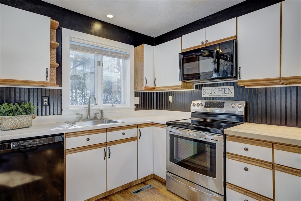 OPEN HOUSE CANCELED... This charming 2+ bedroom vinyl sided raised ranch with central air, open floor plan and cul de sac location has so much to offer. Be delighted with a generous sized eat in kitchen, bead board back splash, butcher block counter and sliders out to a spacious deck, overlooking beautiful flowering shrubbery...just off the kitchen, you'll love the open floor plan, which leads effortlessly to a nice sized living room with bay window. Completing the main level are 2 bedrooms with ceiling fans and full bath w/ granite counter, tub and shower. Need more space?? Adding nicely to your overall living area, is the lower level with 2 additional good sized rooms, brand new carpeting, (just installed January 2026), recessed lighting, freshly painted and bath w/ stand up shower & laundry (washer & dryer to remain). This one won't last...! Make your appointment today...Easy to show.