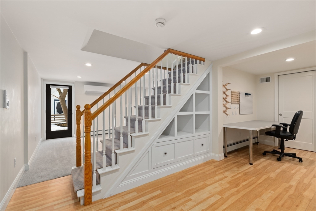 This sun-filled Colonial blends timeless New England character with thoughtful modern upgrades, including owned solar panels, energy-efficient mini splits, and an oversized two-car garage with EV charger. The heart of the home is a spacious eat-in kitchen that flows seamlessly into a bright living room and serene sunroom overlooking the private yard. Gleaming hardwood floors span the main level and lead to a south-facing dining room centered around a cozy fireplace. Upstairs, a generous front-to-back primary suite offers a true private retreat, complemented by two additional well-proportioned bedrooms. A finished walk-out basement provides flexible space ideal for a home office, gym, or recreation area. Ideally located, the home offers easy access to I-90 and Routes 9, 27, and 16, and is just minutes from Natick Center’s restaurants, shops, commuter rail, and highly regarded local schools.