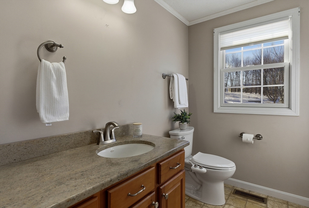 Welcome to 101 Woodruff Road, Clinton! Stunning views come w/ this well-maintained Colonial in a quiet cul-de-sac neighborhood near the Bolton line w/ excellent access to all major highways/shopping! The eat-in kitchen features granite counters, SS appliances, a gas stove, & an island ideal for your morning coffee w/ direct access to the deck. The inviting FR has cathedral ceilings, a Palladian window, built-ins, & a cozy gas-log FP. The formal DR has custom detailing. The 1st floor includes a half bath & a built-in Murphy bed located in the LR, perfect for guests. Upstairs, the primary bedroom includes a w/in closet, double vanity, & private bath. The finished LL expands your living space to include a playroom/office/bonus room. Additional highlights include wainscoting, chair rail, crown moldings, new garage doors, irrigation system, wired for a generator, & fenced yard. Heating & AC (2018-2019). Roof & gutters (2023), brick walkway (2022), & gazebo (2024). Shed for extra storage.