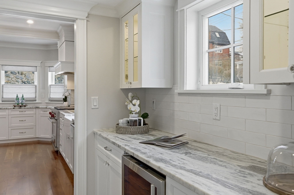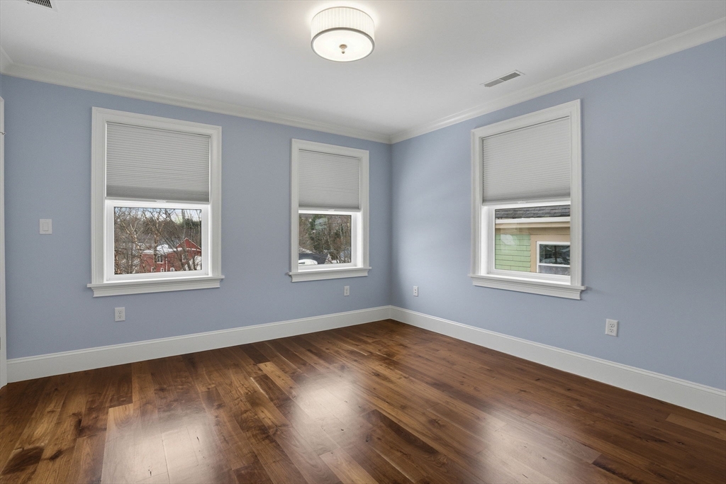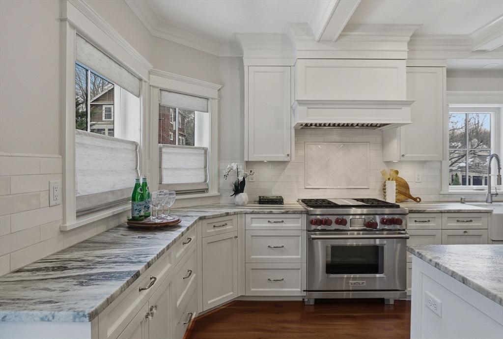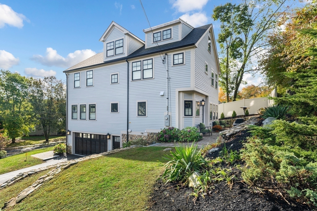 Luxury design meets everyday comfort! Built in 2019, this young Lexington Colonial offers both refined living and modern convenience. The versatile floor plan features an open-concept kitchen and family room, with butler pantry and a formal dining room with tray ceiling, perfect for entertaining. Professional grade appliances, well appointed mouldings with beautiful character grade walnut floors throughout. The second level offers a primary suite plus two generously sized bedrooms, full bath and laundry. The finished third floor has an additional bedroom, full bath and an abundance of storage. The lower level is finished with mudroom, rec room/gym and full bath. The yard features extensive fieldstone walls, fenced patio area with colorful seasonal plantings, perfect for summer evening grilling. Enjoy peace of mind with a whole home standby Generac generator. Ideally located near major commuting routes and just a quick stroll to the bike path, Arlington Res, Trader Joe's & Starbucks.
