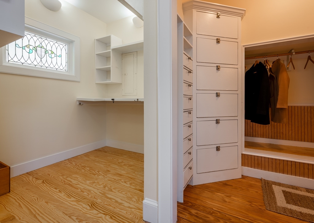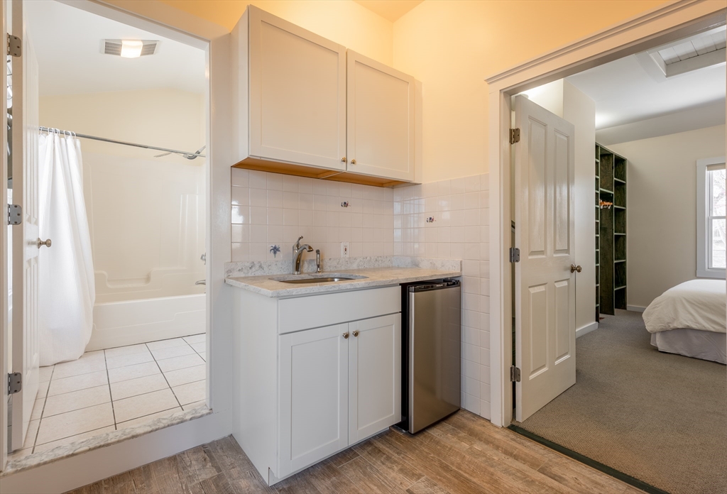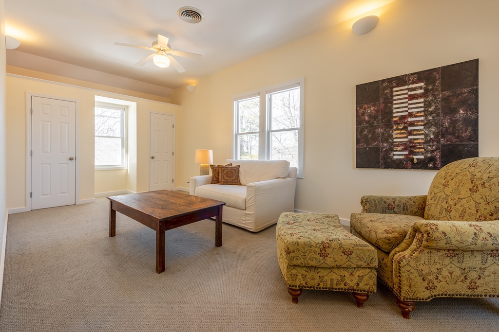 Set in a highly sought-after neighborhood in Rockport, this light-filled home offers direct access to Andrews Woods and nearby public footpaths leading to the shoreline. The flexible layout features four bedrooms plus a fully equipped in-law suite, ideal as a fifth bedroom with private entrance and deck. Exterior storage provides potential for a future studio or creative space. High ceilings and woodland views enhance both levels. Amenities include upstairs laundry, energy-efficient heat and A/C, newer hot water, town water and sewer, and a paved driveway with ample parking. A two-car garage is complemented by a third bay with rear-facing sliders, perfect for a workshop or hobby space. Close to Halibut Point State Park, The Lobster Pool, and Hoop Hole Hollow. Recent updates include refinished floors, fresh paint, and professional staging.