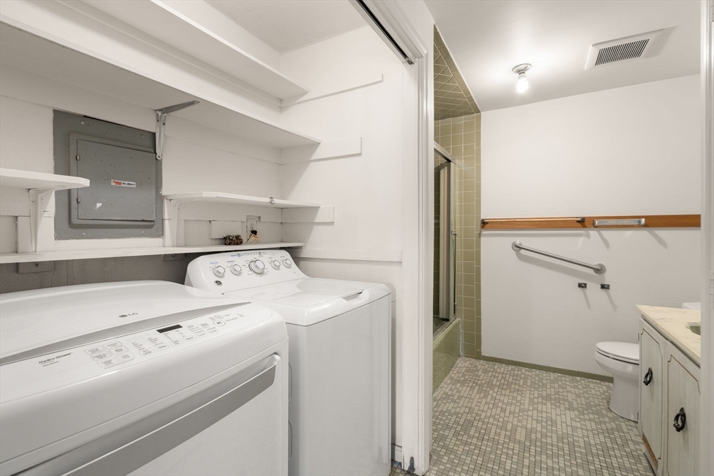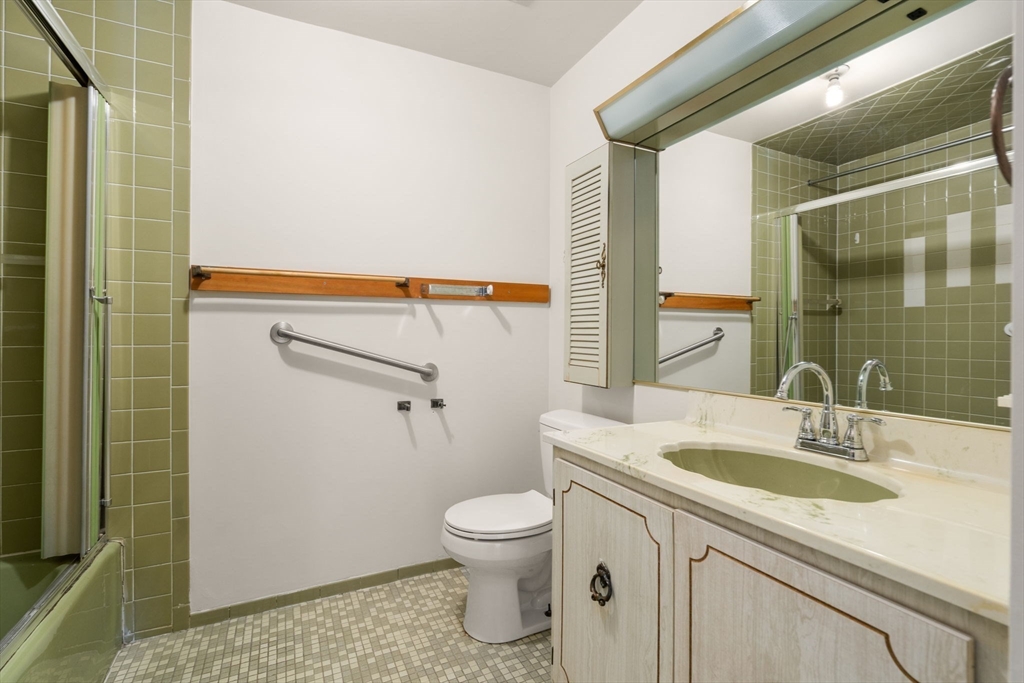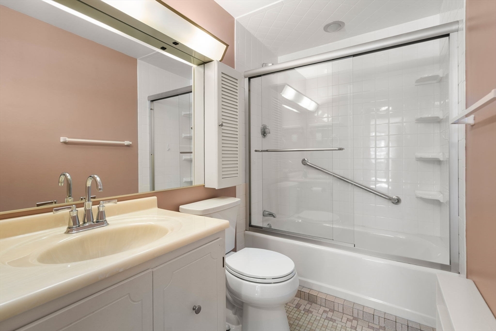 Welcome to East Watertown! Bring your ideas to this south-facing 2 bed, 2 bath condo ideally located in the heart of Coolidge Sq in vibrant Watertown. The bright and sunny living/dining area offers excellent natural light, w/ custom built-in cabinets in the dining space and a glass slider in the living room that opens to a private balcony overlooking the beautiful grounds and pool. The kitchen features maple cabinets, solid-surface counters, and tile backsplash. The spacious primary suite includes a walk-in closet and a tiled bath. A generously sized 2nd bedroom and a 2nd full bathroom w/ in-unit laundry provide comfort and convenience. Additional highlights: garage parking, elevator building, in-ground pool, and beautifully landscaped grounds. Surrounded by public transportation, shopping, restaurants, CVS, Dunkin’ Donuts, Middle Eastern markets, and more. This location is a commuter’s dream w/ easy access to Cambridge/Boston by car, public transit, or the Watertown-Cambridge Greenway