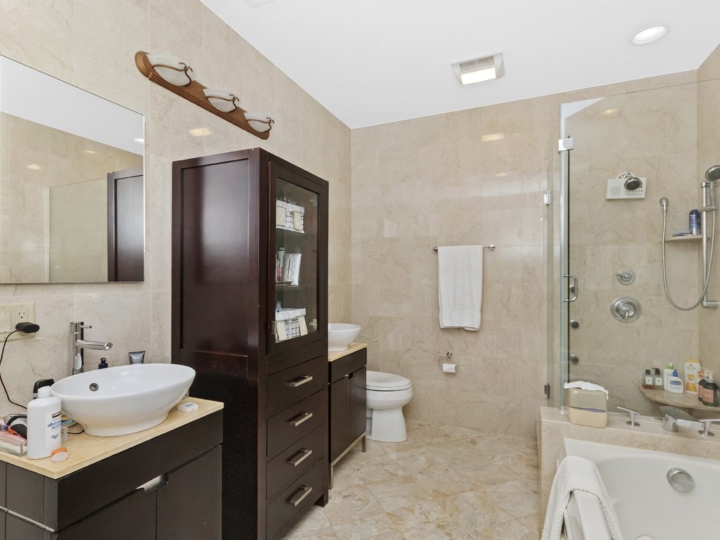 Unique renov. of an open concept, flr thru flr plan offers 2 bdrms plus bonus room ideal for study/nursery/guest rm & 2 luxurious baths w/ every amenity. Hardwood floors, high ceilings and large southfacing windows with an incredible view of Pru. Chef’s Kitchen incl, granite, S/S appl., double ovens, island for prep. & pantry. Metropolitan living at your door step, close to Prudential, Copley Sq, Restaurants, Shops, Newbury St & more! Unit features W/D & C A/C. Building offers, direct elev. garage prking 1 spot included and 1 additional avail for rent on site. This apartment is spacious and open modern layout. Inquire today!