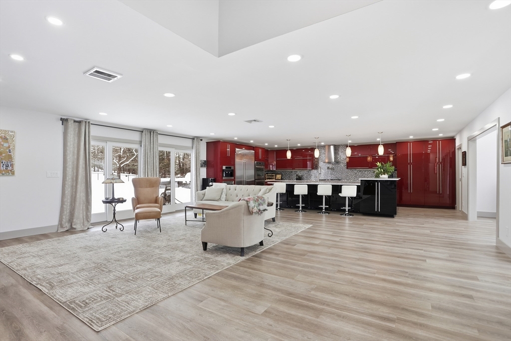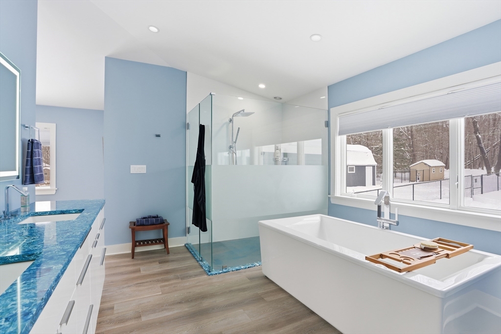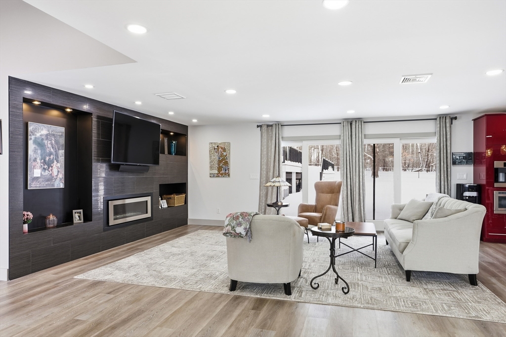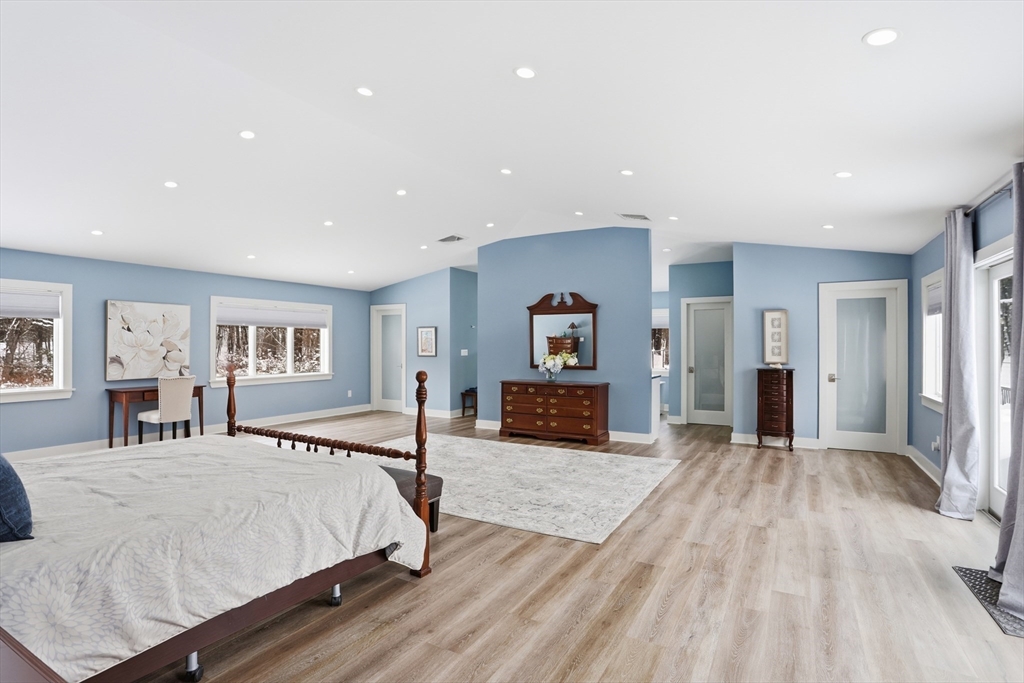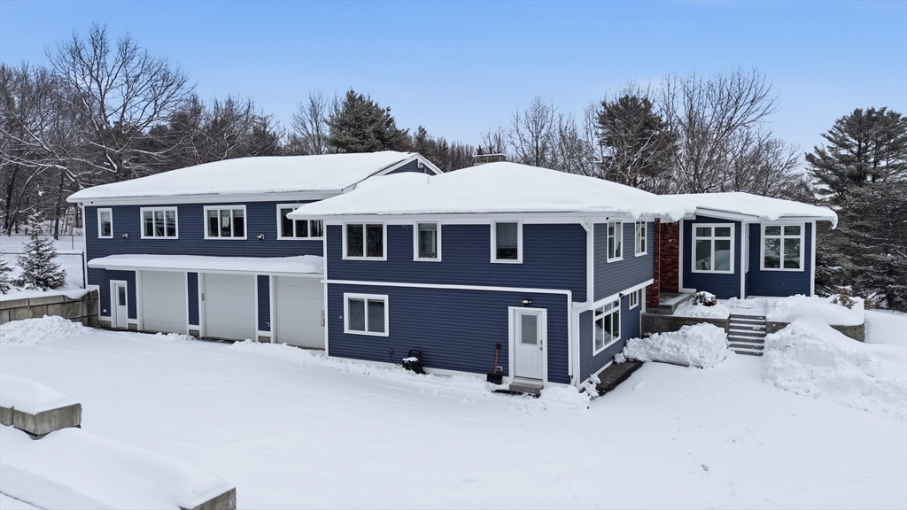 Unique, stately property in "like new" condition! Gut renovated just 5 years ago and added onto, and improved! So many bells and whistles, including Solar Panels! Sitting well off the street, on over 3 open acres. Level fenced in back yard, wrap around deck with a pool/spa. Large reconditioned shed, lots of room for gardening, inground pool, or even an ADU! An amazing open kitchen/living room combo with an elegant new dining room addition, with walls of glass! Top level, there are 4 nicely sized bedrooms, all with their own baths! The spectacular primary suite has cathedral ceilings, and is an enormous space, that could even be made into an in-law! Radiant floor heating throughout the top two levels! Lower levels, have wonderful additional rooms. Large family/play room, a nice sitting area with fireplace. Large private office with exterior access, a 5th bedroom and a 3-car heated garage with tons of extra storage. Top rated Groton/Dunstable Schools! Need to see to believe!