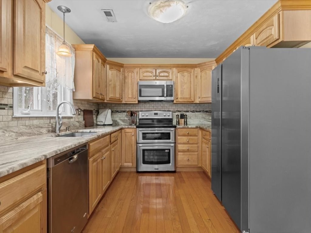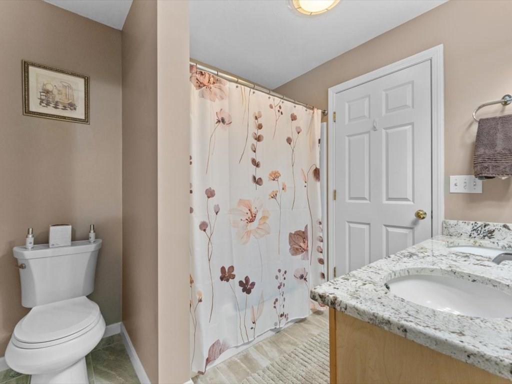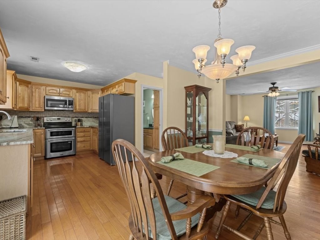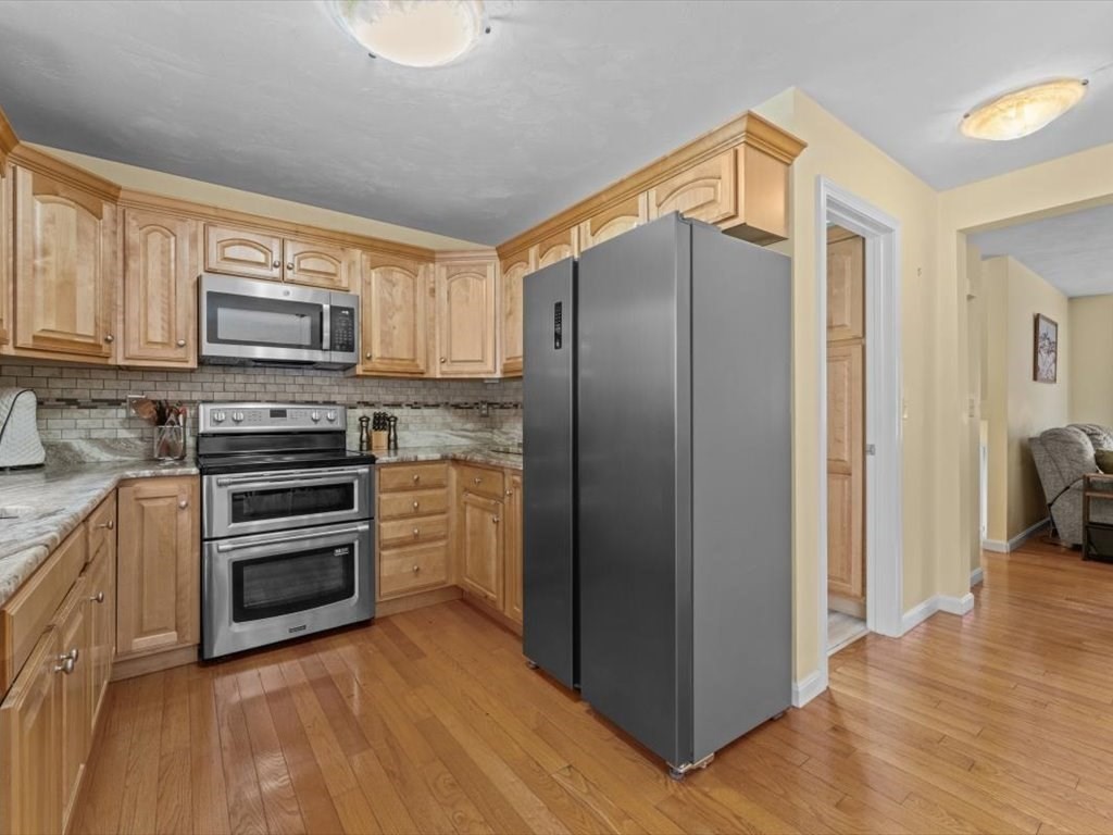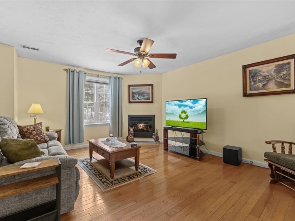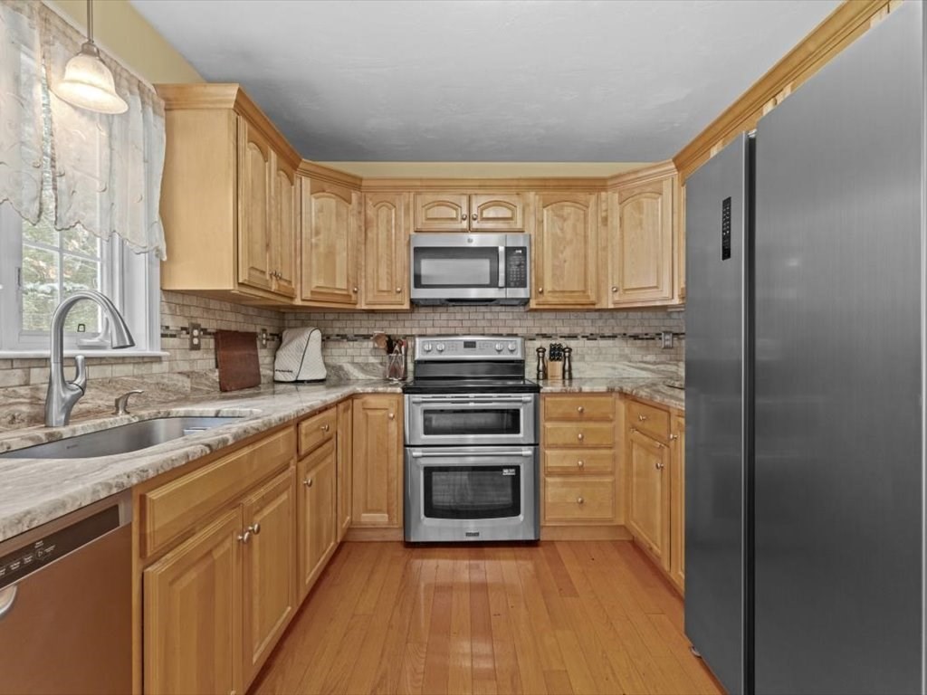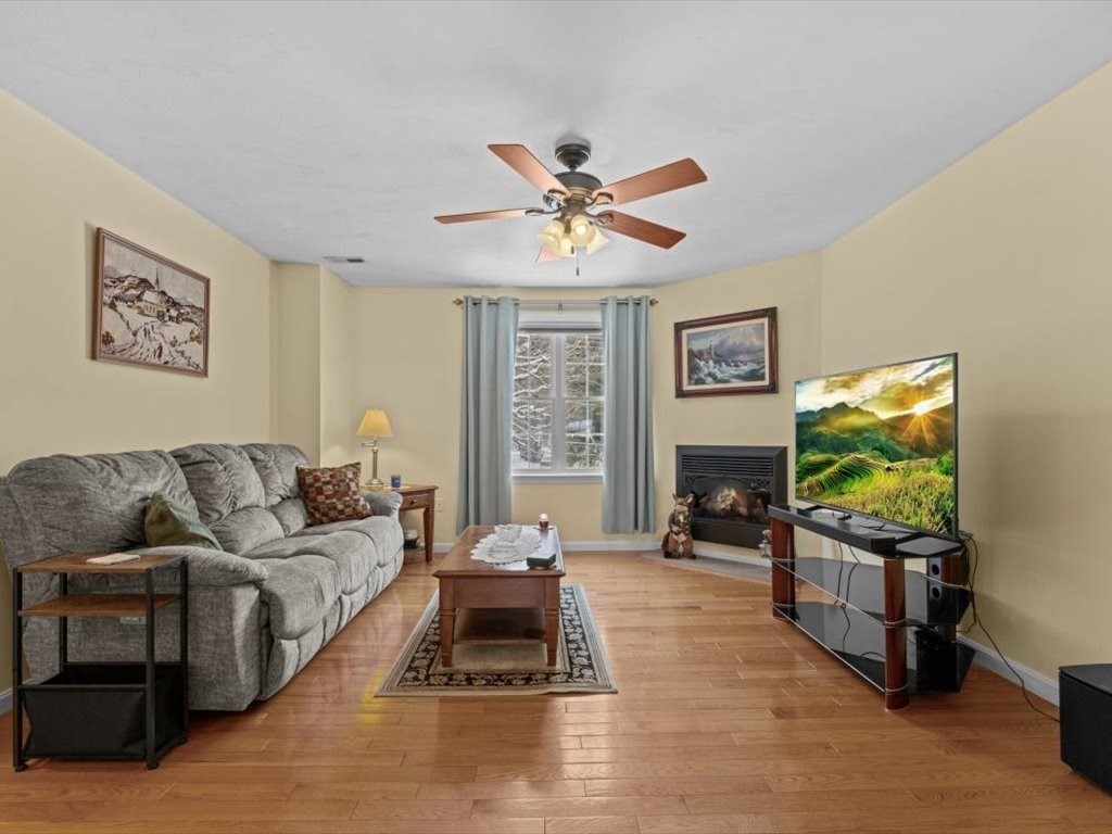 Stunning end unit full of light near the schools and town loop of Uxbridge is ready for YOU. You'll love the fully renovated kitchen with stone countertops and tiled backsplash just as much as you'll love the way it seamlessly flows through a large dining area and into a wonderful sunny living room. The hardwoods gleam and the electric fireplace add wonderful ambiance. Head up to the two large bedrooms - one with plenty of room and large closet - the other being the main bedroom with walk in closet and 'Jack & Jill' access to your full bathroom. The lower level has your garage (keep that snow off your car!!) and a large laundry/storage room to keep yourself organized. Small community of just 4 units with plenty of additional parking and not far from the highways at all. Make this the one - it's a true gem.