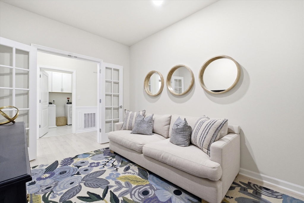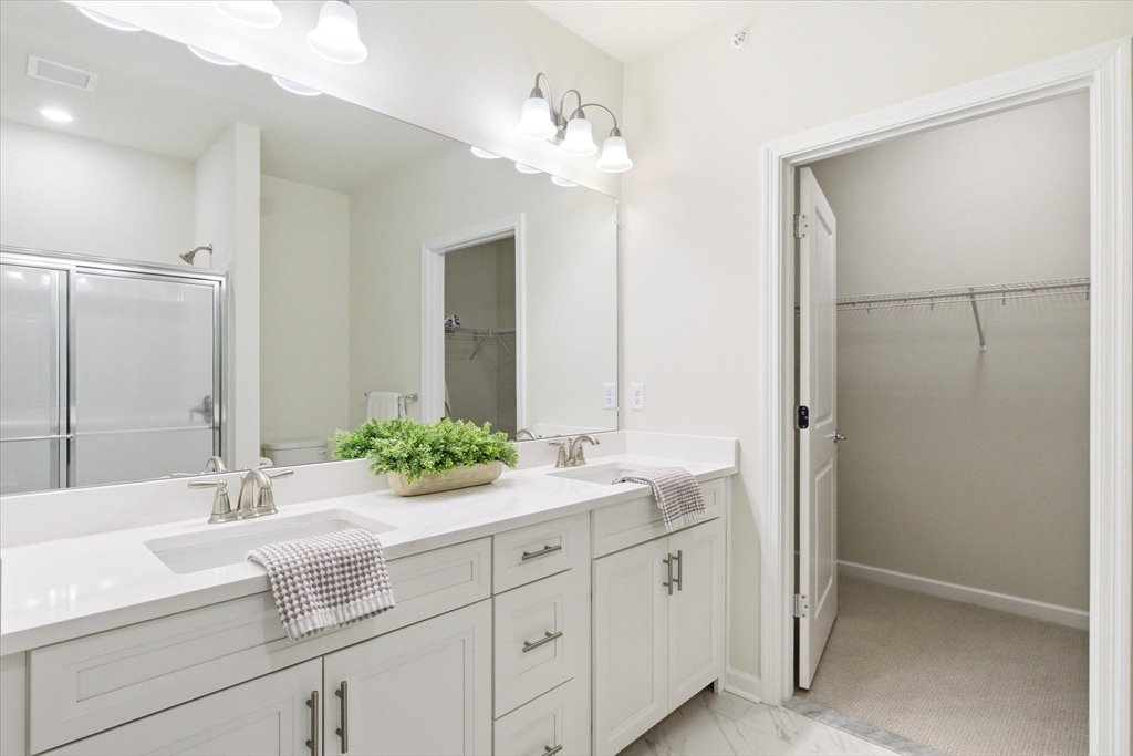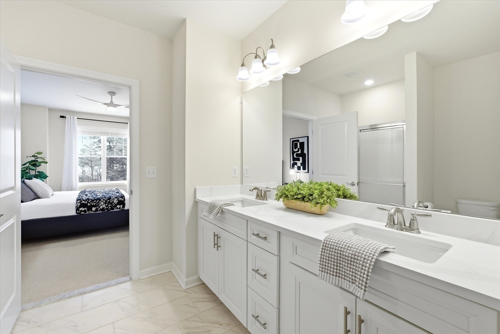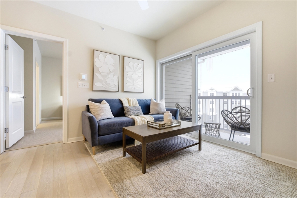 Premiere top-floor unit in the esteemed, pet friendly 55+ community at Martins Landing - WITH A RARE DEEDED GARAGE PARKING SPACE! This unit is JUST 1 YEAR YOUNG - Unexpected relocation makes it ready for a quick close! This "Franklin" style unit features numerous upgrades including the gourmet kitchen package w/generous island, wall oven & cooktop, as well as cabinetry, countertops & flooring upgrades! Desirable open kitchen/living room concept w/sliders to your private balcony where you'll enjoy your morning coffee. The versatile floor plan allows for a den/office with French doors for added privacy. The spacious & luxurious primary ensuite boasts a large double vanity, separate shower & walk-in closet. The second bedroom & private bath are ideal for guests. You'll appreciate the designated laundry room. Assoc Amenities are ideal for a carefree, active lifestyle including a clubhouse, fitness center, outdoor grilling stations, & walking trails. Showings start at the OH Fri. Feb. 27!